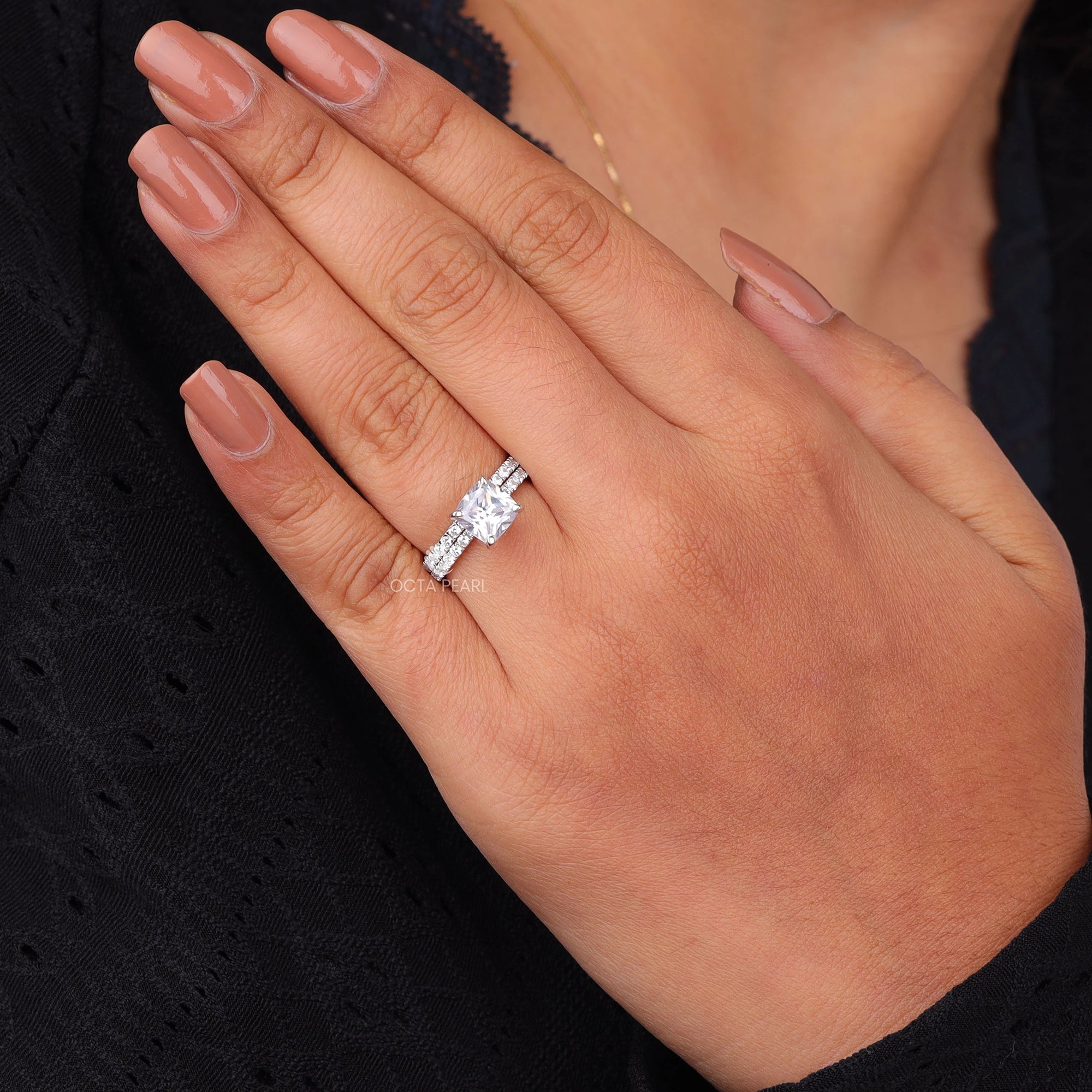 This Cushion & Round Moissanite Wedding Bridal Ring Set in 14K gold blends timeless elegance with brilliant sparkle. The cushion-cut moissanite center stone radiates fire and brilliance, beautifully accented by a matching round-cut moissanite band. Crafted with precision and conflict-free stones, this bridal set is durable, sustainable, and perfect for modern brides. Ideal for engagements, weddings, or anniversaries, it symbolizes everlasting love and commitment while offering a luxurious yet affordable alternative to traditional diamonds.