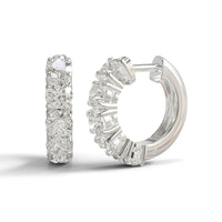 Enhance your jewelry collection with these Five Stone Small Huggie Earrings in Round Cut Moissanite, set in luxurious 14K white gold. Featuring five sparkling round cut moissanite stones, these earrings provide exceptional brilliance, with a total carat weight of 1 3/5 TCW. The huggie design offers a secure and comfortable fit, perfect for both daily wear and special occasions. Crafted with precision, these earrings are a stunning addition to any diamond jewelry collection. Ideal for those who appreciate moissanite jewelry, they pair effortlessly with vintage necklacesgemstone rings, or halo earrings, adding sophistication and style to every look.