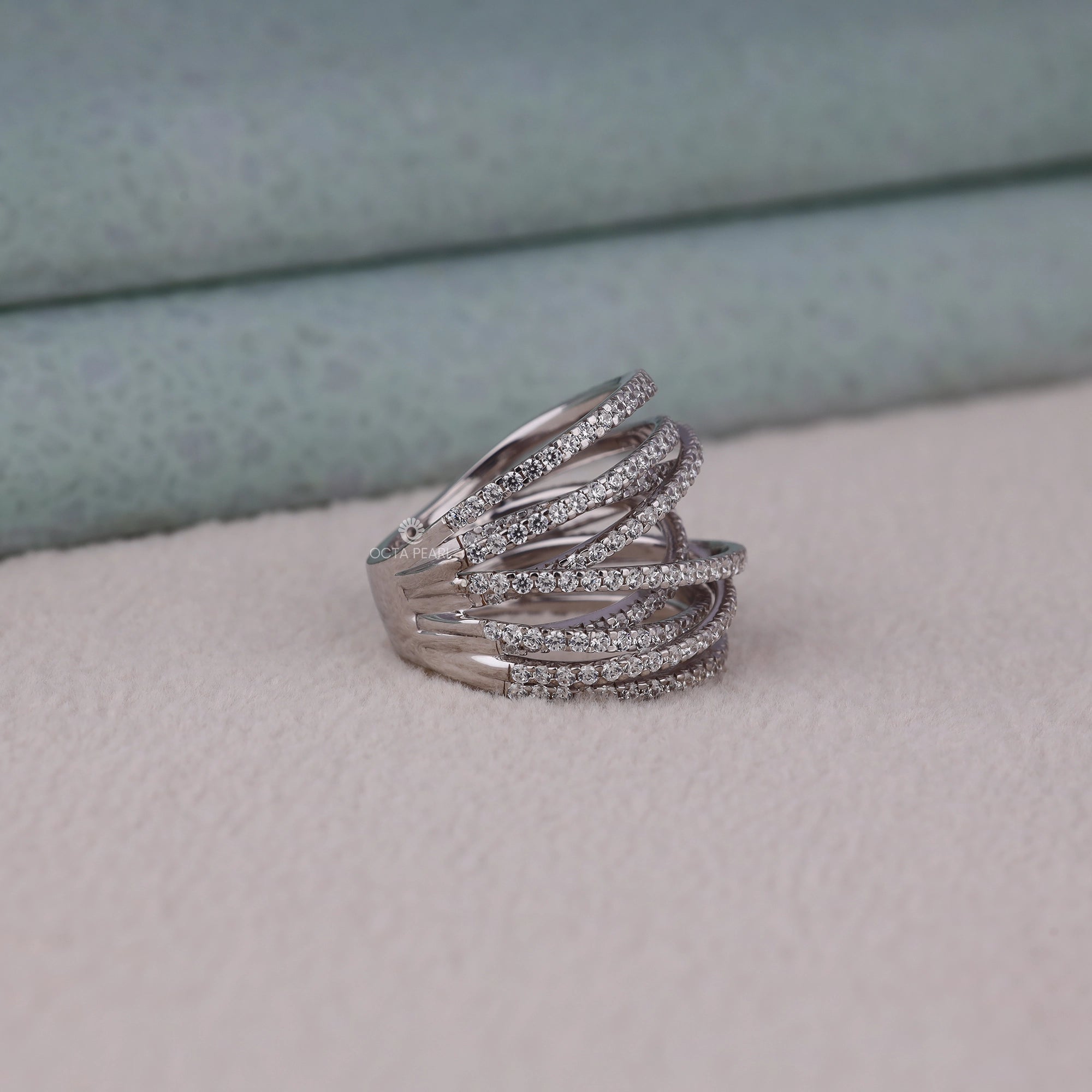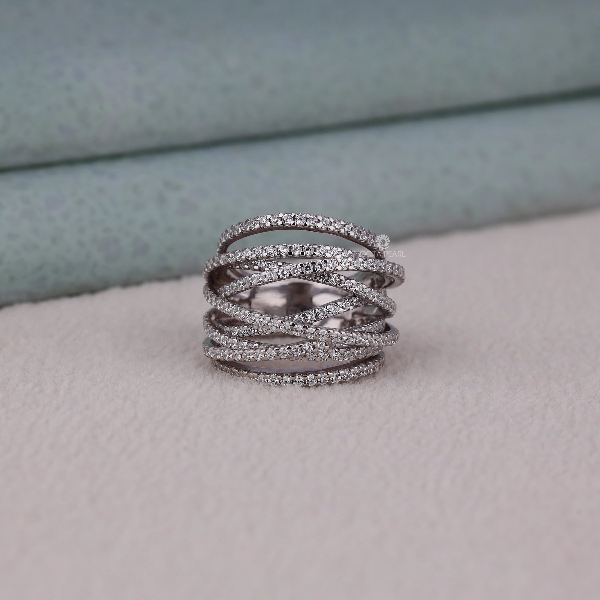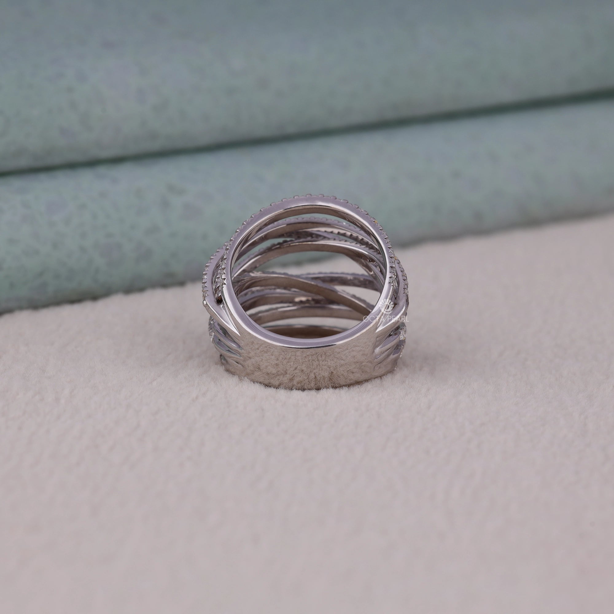 A bold expression of elegance, this multi-layer Moissanite Diamond ring is designed to captivate from every angle. Featuring gracefully intertwined bands adorned with brilliant Moissanite stones, it creates a stunning illusion of stacked luxury in a single masterpiece. Perfect for modern women who love statement jewelry with timeless sparkle, this ring adds sophistication to both everyday looks and special occasions.