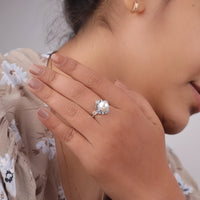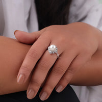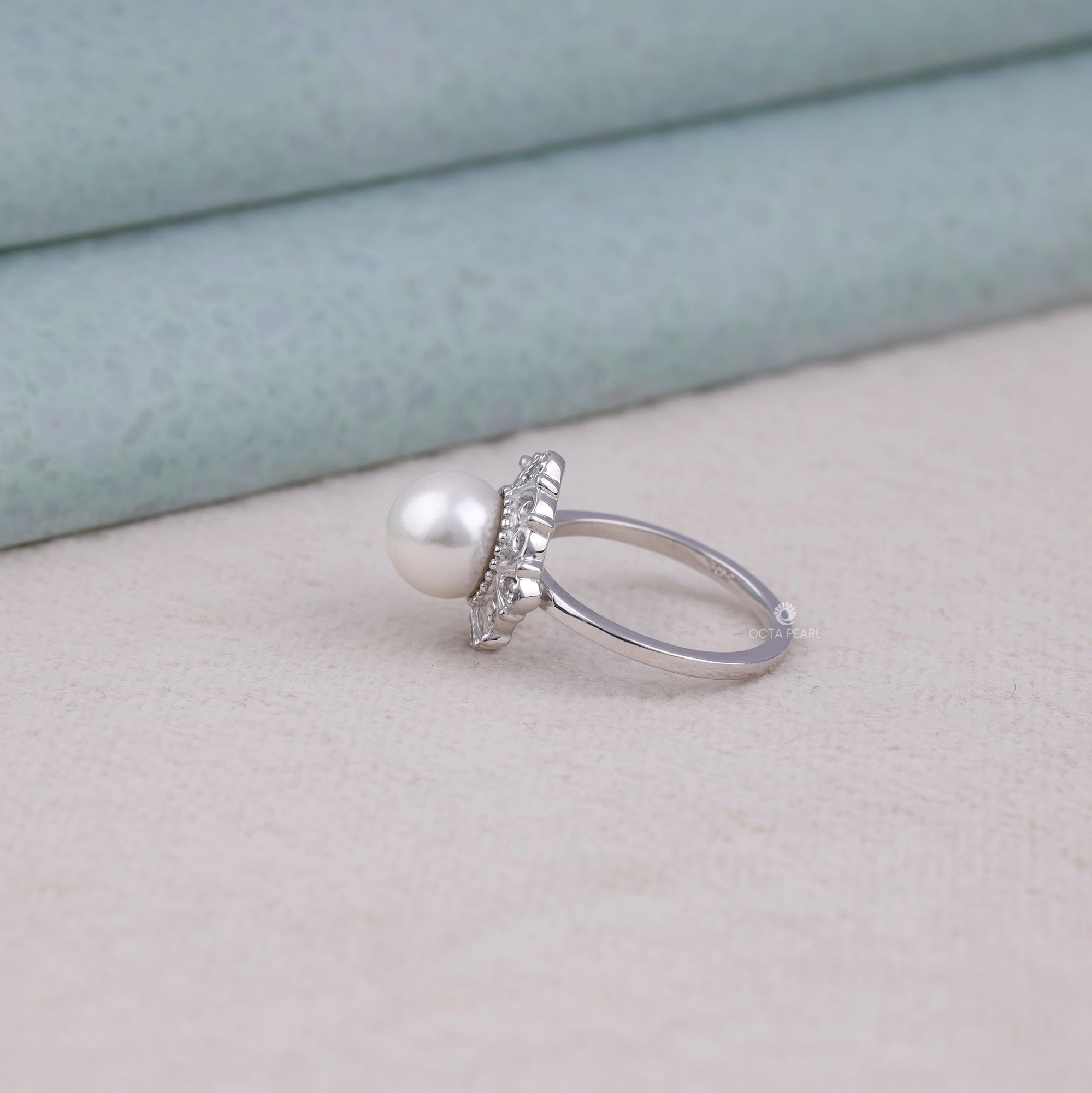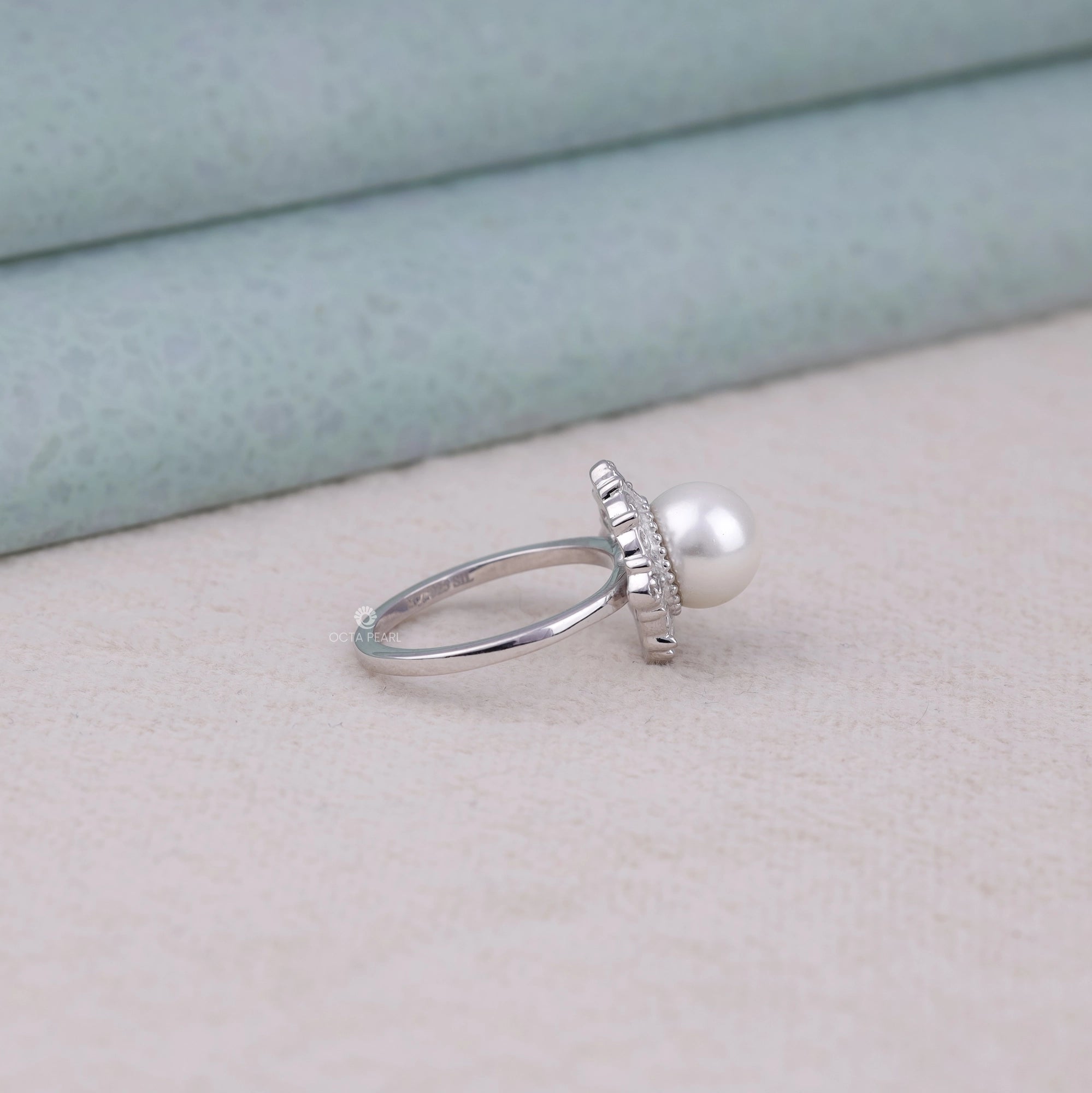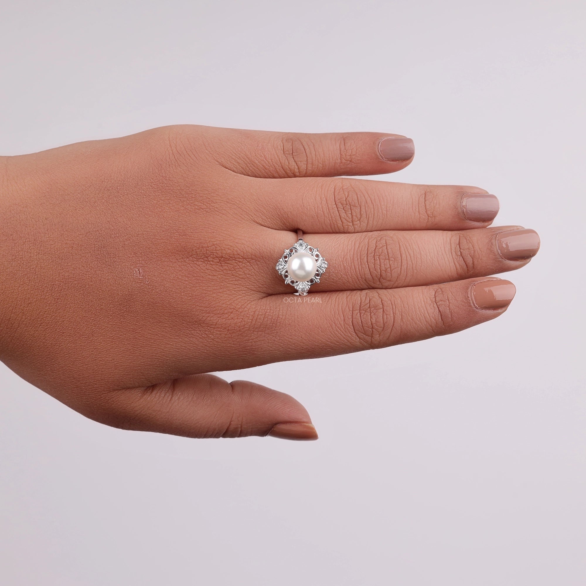 The Freshwater Pearl with Round CZ Stone Filigree Work Wedding Proposal Ring is a sophisticated and elegant choice for an unforgettable proposal. Featuring a lustrous freshwater pearl at its center, the ring is accentuated by a sparkling round CZ stone on each side, creating a beautiful contrast. The intricate filigree work around the band adds vintage charm and delicate detailing, enhancing the overall beauty of the design. Perfect for a romantic wedding proposal, this ring combines classic elements with modern flair, making it an exceptional piece to symbolize a lifetime of love and commitment.