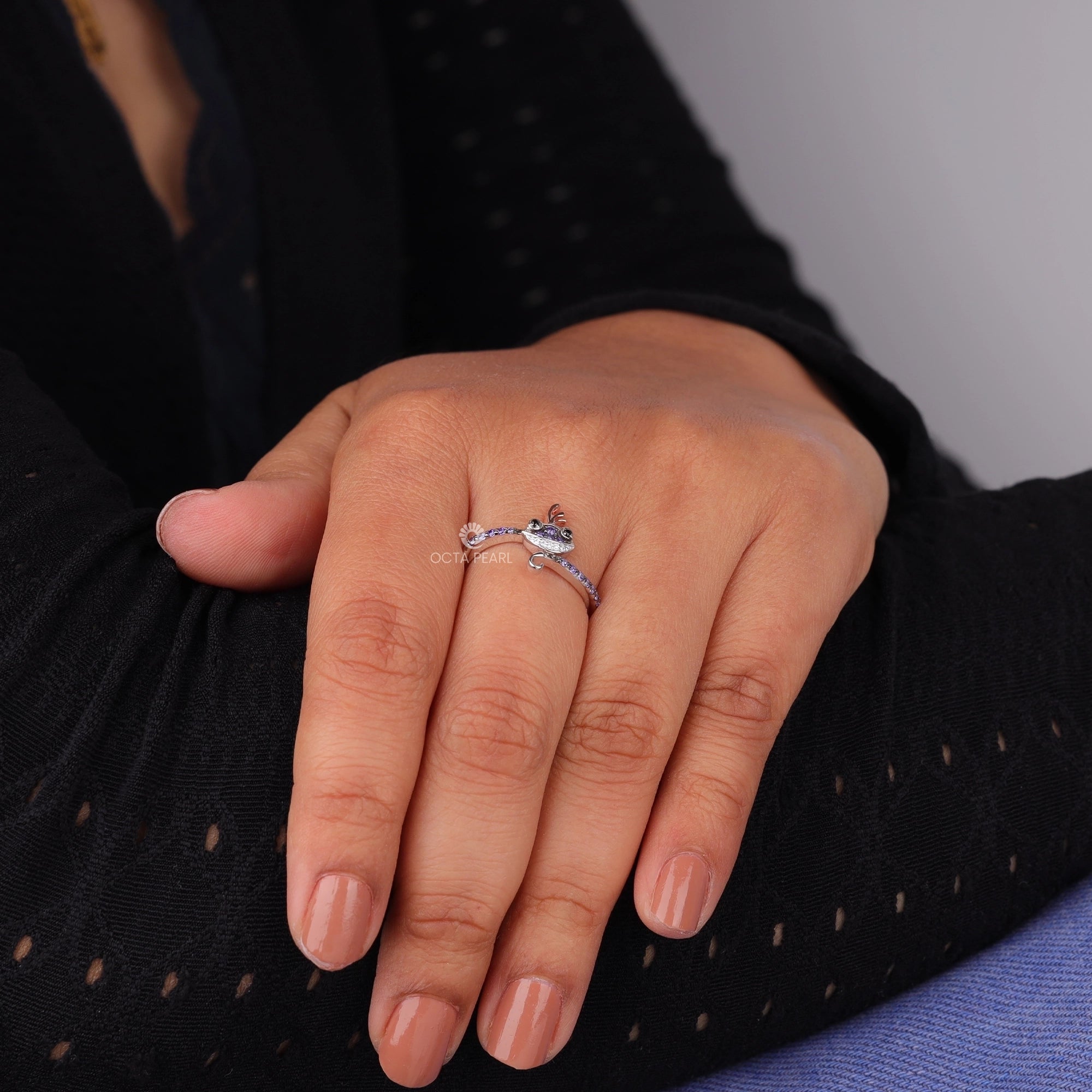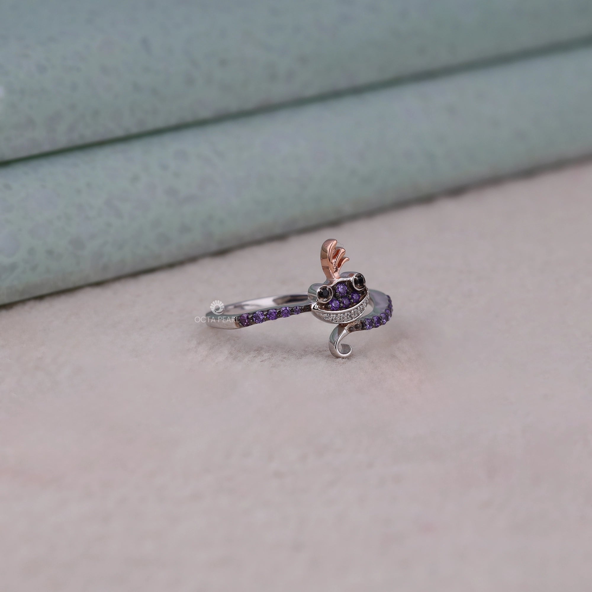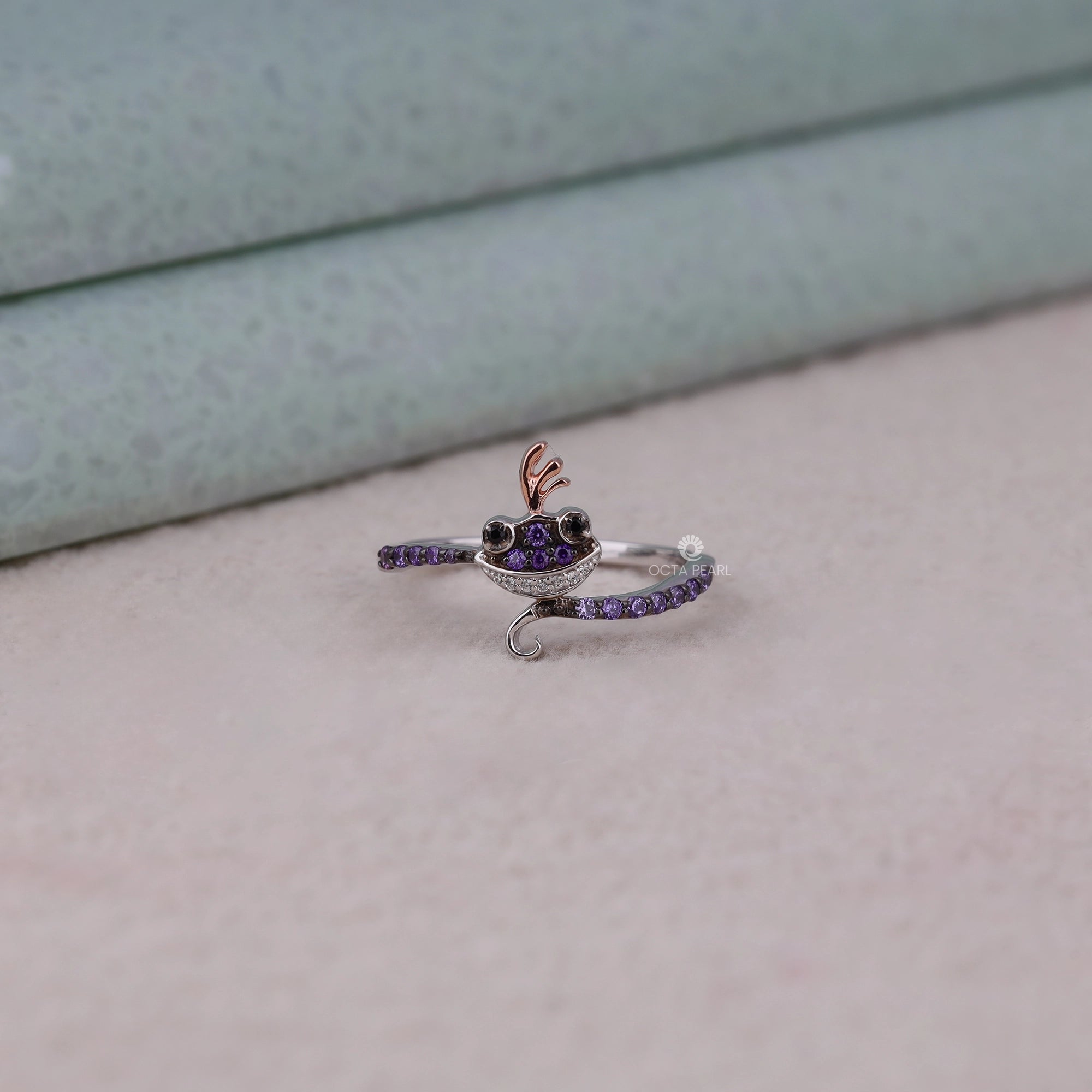 Inspired by the mischievous Monster Randall Boggs, this unique ring captures his mysterious and playful essence. Featuring rich amethyst and deep black onyx CZ round stones, it blends fantasy and fashion in perfect harmony. Designed for fans of whimsical and character-inspired jewelry, this ring makes a bold statement piece. Ideal for everyday wear, cosplay, or gifting to collectors who adore creative, movie-inspired accessories.
