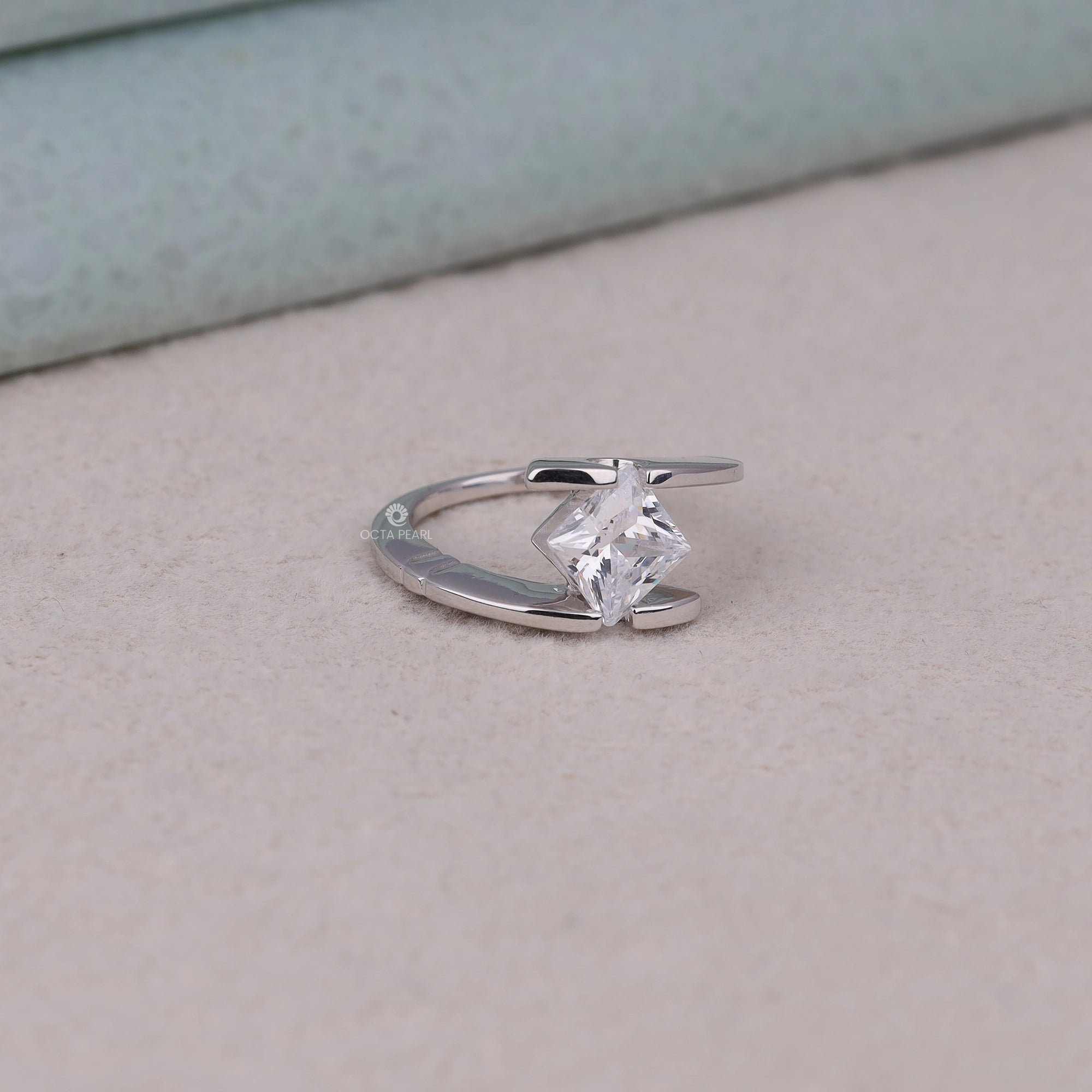 This Bypass Shank Tension Set Princess Cut Moissanite Solitaire Engagement Ring is a modern masterpiece of design and brilliance. The striking princess cut Moissanite solitaire is securely held in a sleek tension setting**, allowing light to flow freely for maximum sparkle. The graceful bypass shank** adds a contemporary twist, curving around the center stone with elegant symmetry. Crafted for those who appreciate innovation and timeless elegance, this Moissanite engagement ring is perfect for making a bold, romantic statement. Celebrate your love with a ring that combines strength, style, and lasting brilliance.