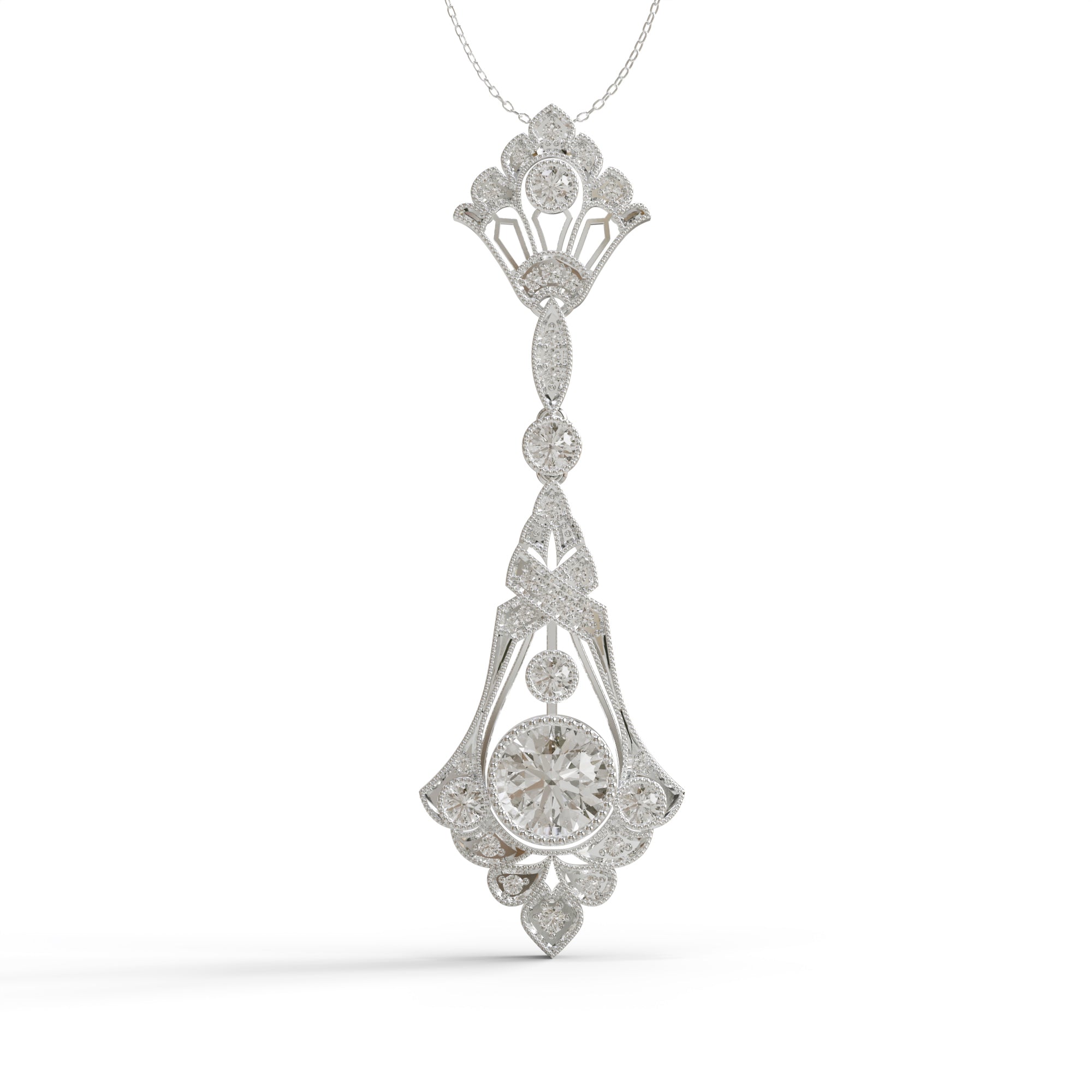 Embrace timeless elegance with this Round Cut Moissanite Antique Art Deco Wedding Necklace. Featuring a dazzling round cut moissanite stone, this necklace showcases an intricate Art Deco design that exudes vintage sophistication. Perfect for weddings and special occasions, its unique craftsmanship highlights a blend of classic and modern aesthetics. The sparkling moissanite adds unmatched brilliance, making it a centerpiece in any jewelry collection. Pair it with moissanite earrings, vintage bracelets, or diamond rings to create a stunning ensemble for your big day or cherished moments.
