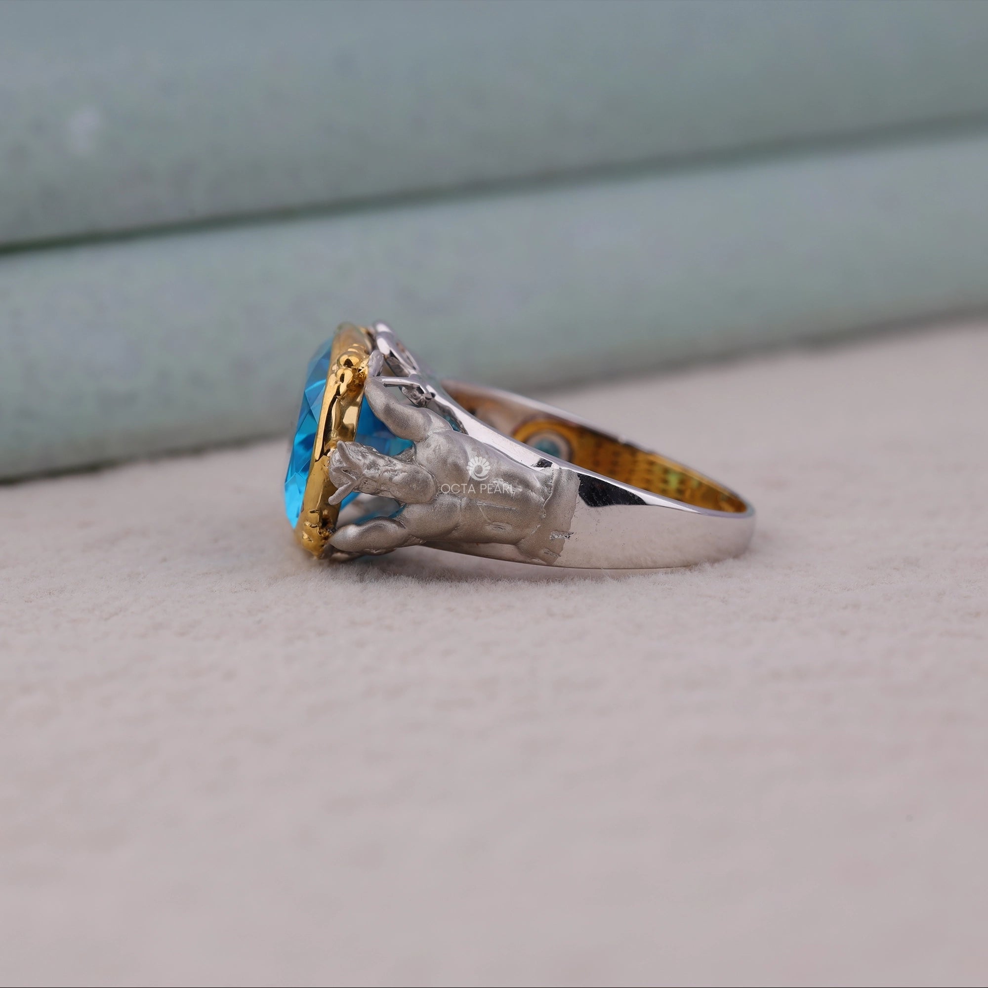 Make a bold statement with this unique Aqua-Man Poseidon Mascot Cocktail Ring. Featuring a striking design inspired by the mighty Poseidon, this ring showcases vibrant aqua accents that exude power and charm. Perfect for cocktail parties, special events, or as a standout accessory, this ring adds a touch of creativity and bold elegance to any outfit. Elevate your style with this eye-catching Poseidon mascot cocktail ring, crafted to make a lasting impression.