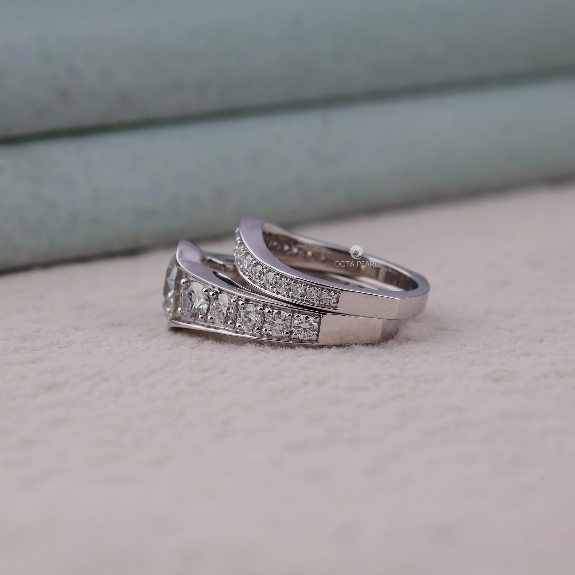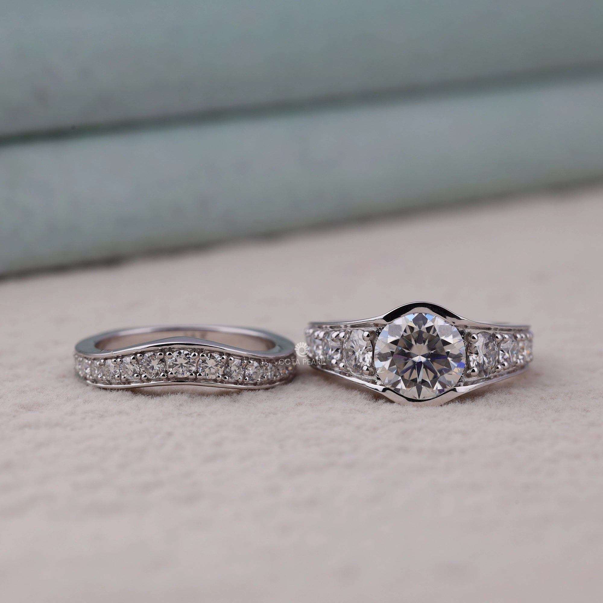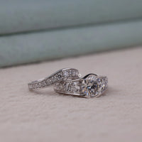 Celebrate your love with this Moissanite Two Piece Engagement & Wedding Ring Set, featuring a dazzling round moissanite solitaire paired with a softly contoured pave band—both set in polished, hypoallergenic silver. The engagement ring sparkles with pave-set moissanites across the shoulders, while the wedding band complements with perfectly matched shimmer and a smooth, comfortable fit. Ideal for US brides seeking lasting luxury, affordable elegance, and ethical lab-grown stones for proposals, anniversaries, or bridal sets.