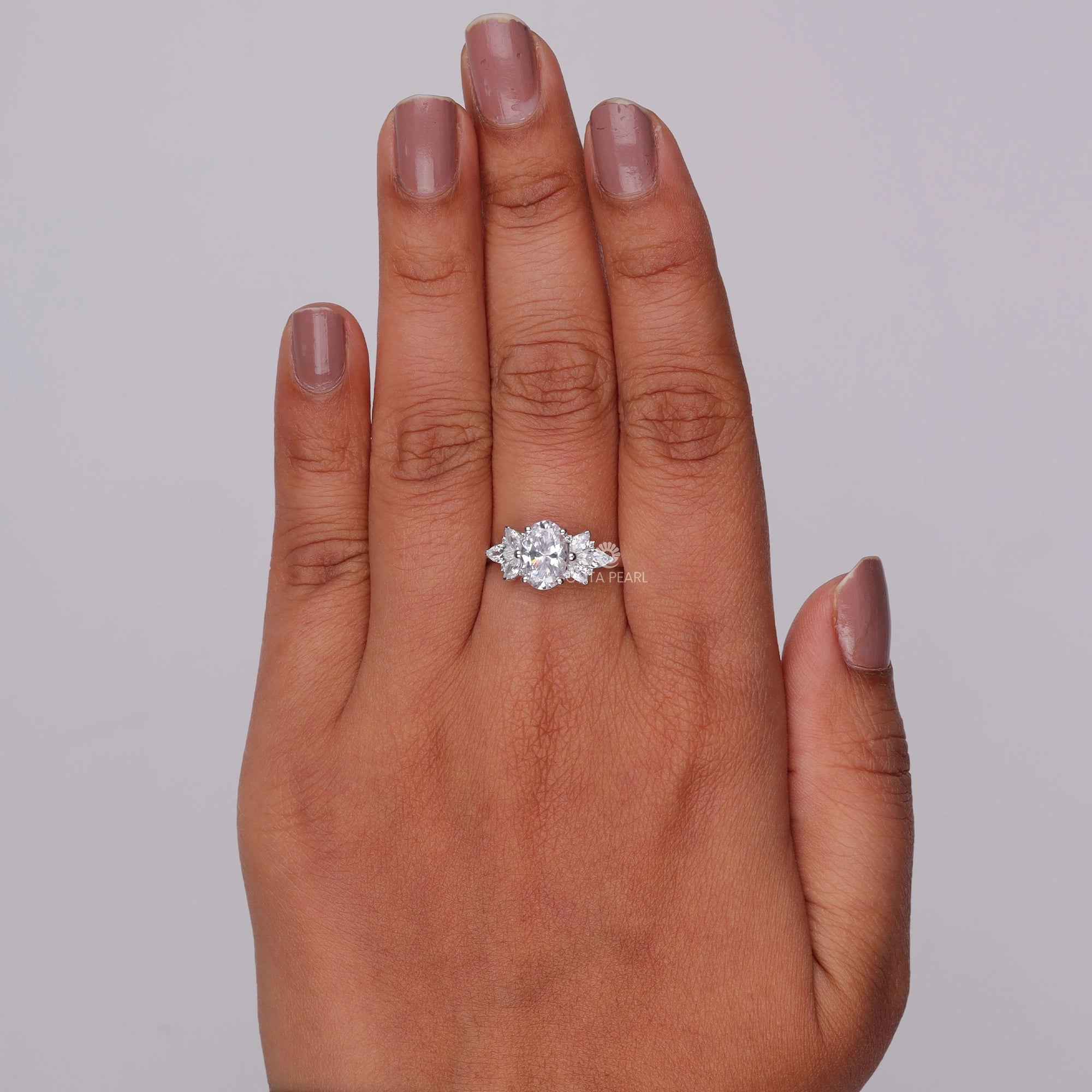 Celebrate everlasting elegance with this Oval Moissanite Engagement Ring, featuring a shimmering oval center stone flanked by marquise-cut side stones on a sleek silver band. Crafted with premium lab-grown moissanites for superior brilliance, this ethically made ring is hypoallergenic, comfortable, and perfect for proposals or special milestones. Its unique three-stone design delivers vintage-inspired sparkle and modern luxury for USA jewelry lovers.