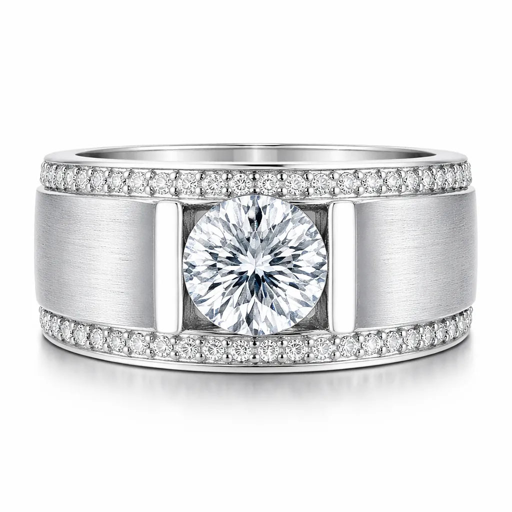 Elevate your look with this Round Cut Moissanite Tension Setting Wedding Ring, a bold modern band designed for men (and also suits a unisex style). The brilliant round‑cut moissanite is secured in a sleek tension setting, creating a “floating stone” effect that maximizes light and sparkle while keeping the design clean and contemporary.