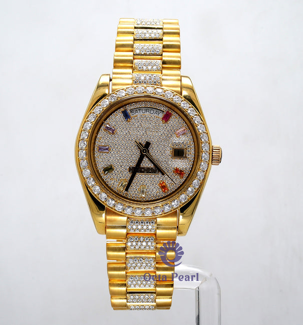 Make a statement with this Multi Gemstone Gold Band Ring, showcasing vibrant sapphires, rubies, emeralds, and sparkling CZ stones on rich gold for modern luxury. The precision-cut gemstones and unique star motif add color and...