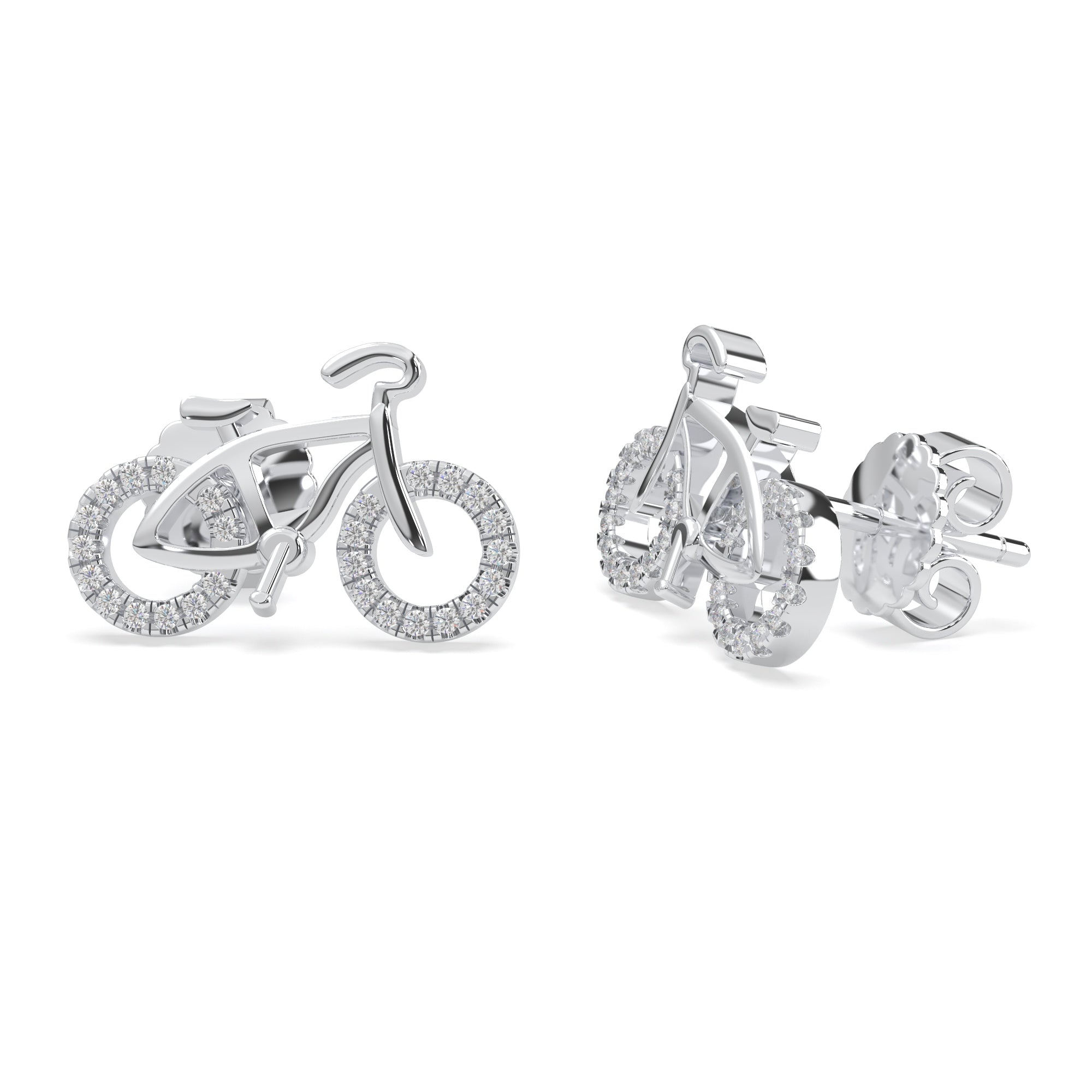 Celebrate your love for cycling with these Round Moissanite Dainty Minimalist Bicycle Stud Earrings. Crafted with sleek lines and shimmering round cut Moissanite stones, each stud features a charming bicycle silhouette that combines playful spirit with elegant minimalism. Lightweight and comfortable, these bicycle earrings are perfect for everyday wear, travel, or as a thoughtful gift for cyclists and fitness lovers. Whether you're hitting the road or simply want to show your passion for biking, these Moissanite stud earrings add a subtle sparkle and personal touch to your style.