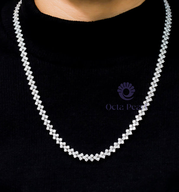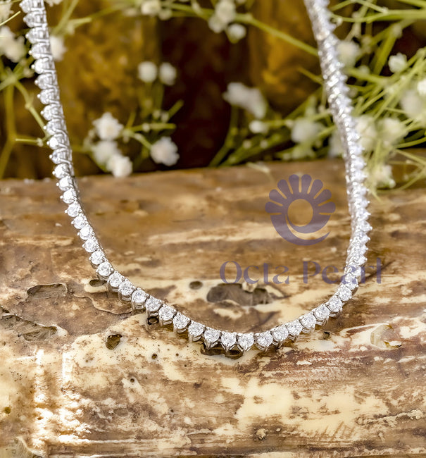 This Round Cut Moissanite Statement Tennis Necklace (7 1/2 TCW) is a luxurious piece designed to make a bold statement. The necklace features stunning round cut Moissanite stones, each meticulously set to maximize brilliance and...