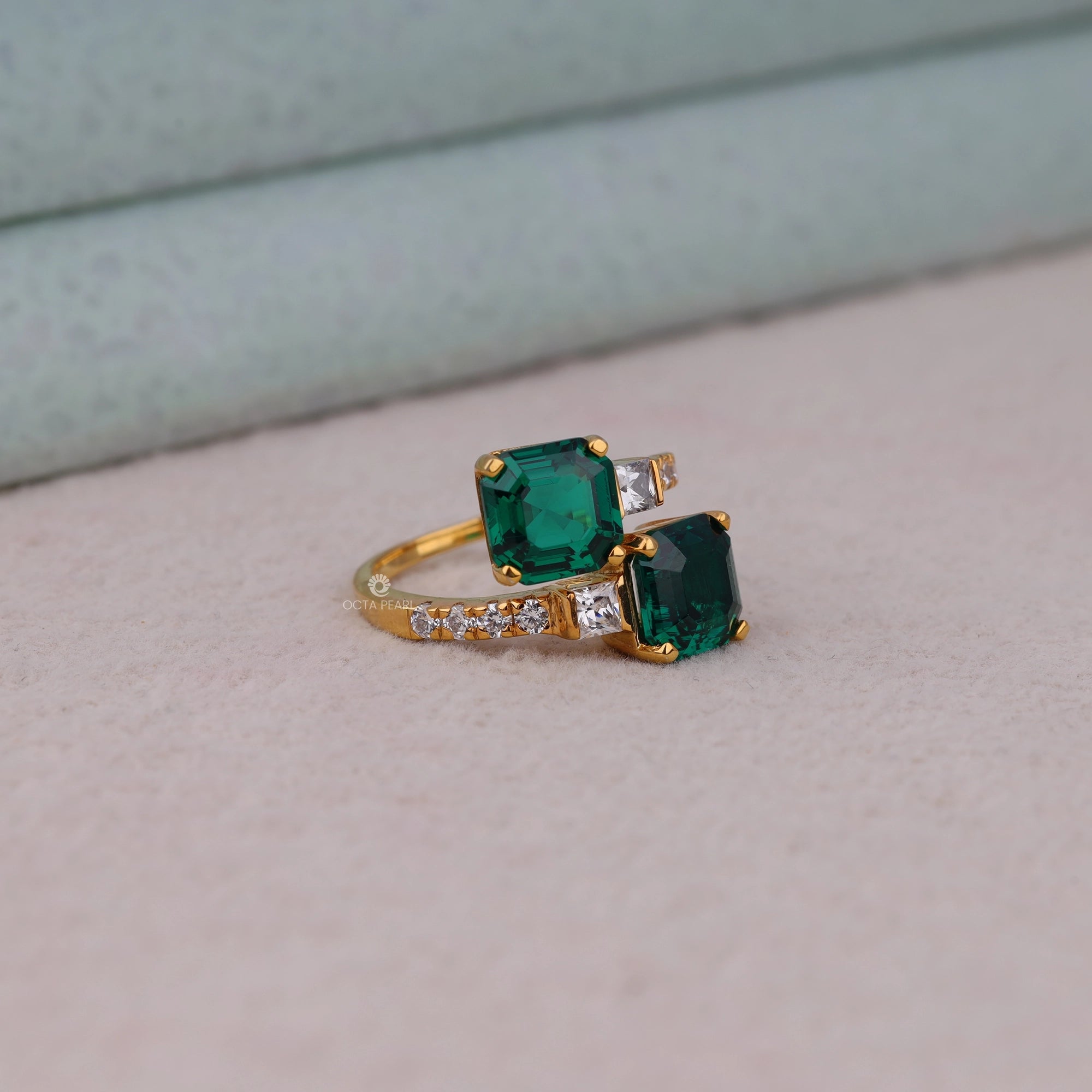 This Green Asscher Cut CZ Stone Bypass Toi Et Moi Engagement Wedding Ring is a stunning symbol of love and unity. Featuring two vibrant asscher-cut cubic zirconia stones in a modern bypass design, the ring combines elegance with a bold pop of color. The striking green stone enhances its uniqueness, while the high-quality CZ ensures lasting brilliance and durability. Perfect as an engagement ring, wedding band, or anniversary gift, this Toi Et Moi ring offers timeless beauty, affordability, and contemporary style.