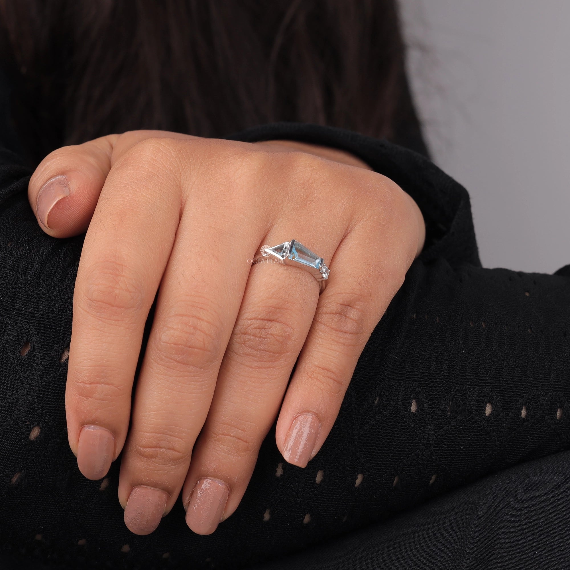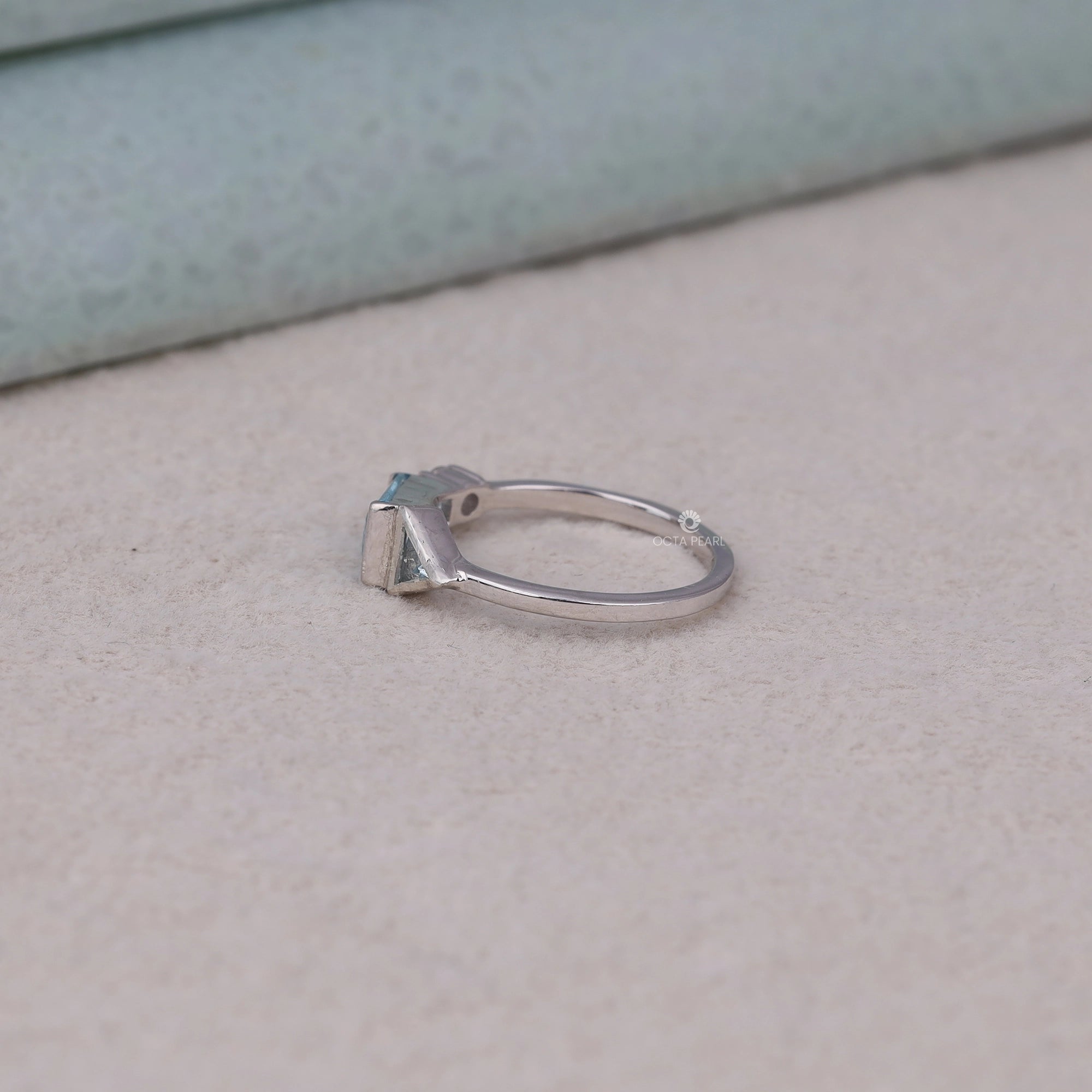 This Aquamarine Tapered Baguette & CZ Three Stone Promise Ring blends minimalist elegance with meaningful symbolism. Featuring a serene aquamarine center stone flanked by sparkling tapered baguette CZ stones, it represents past, present, and future love. Crafted with precision for durability and comfort, this ring is perfect as a promise ring, minimalist engagement piece, or anniversary gift. Its timeless design and affordable luxury make it a versatile addition to any jewelry collection and ideal for everyday wear.