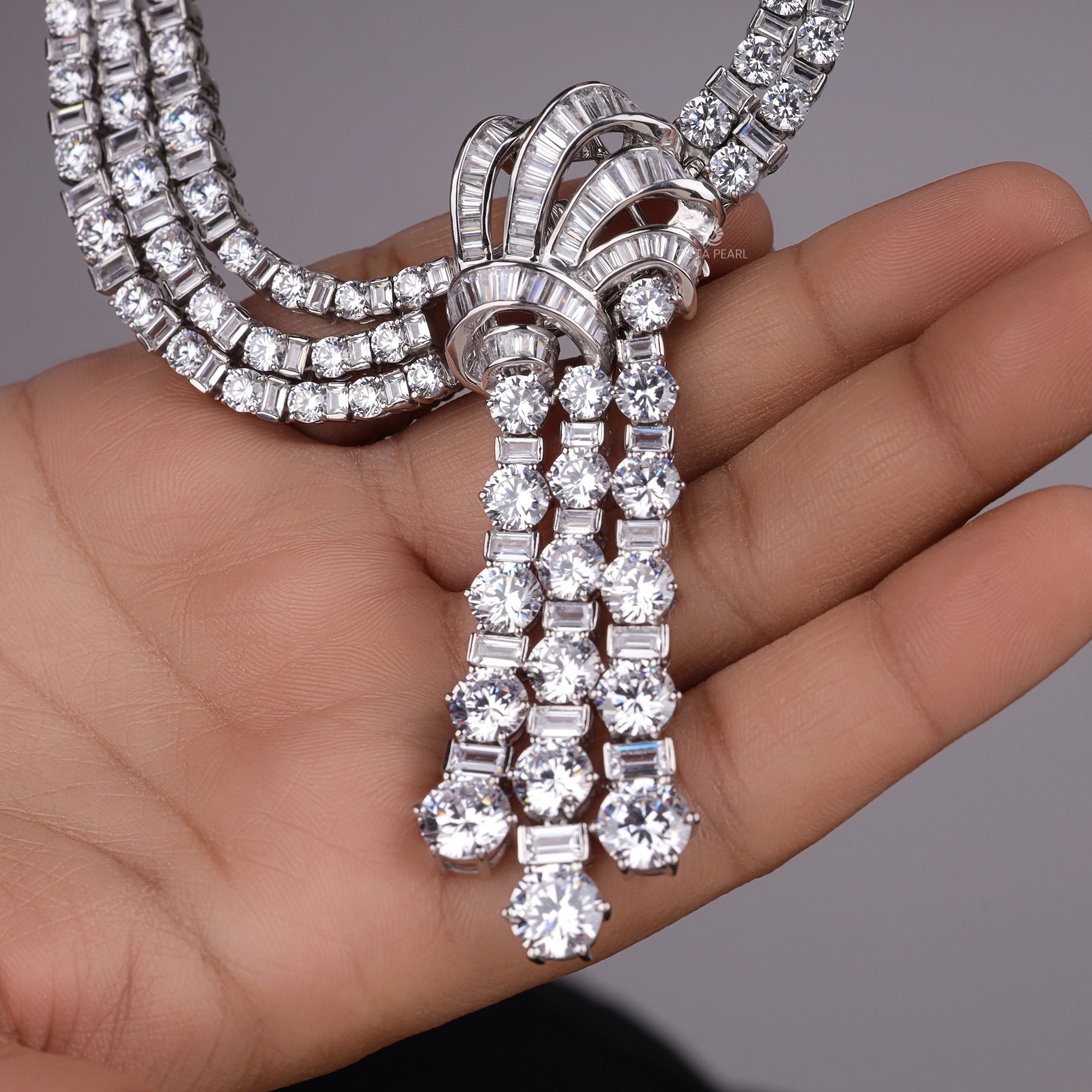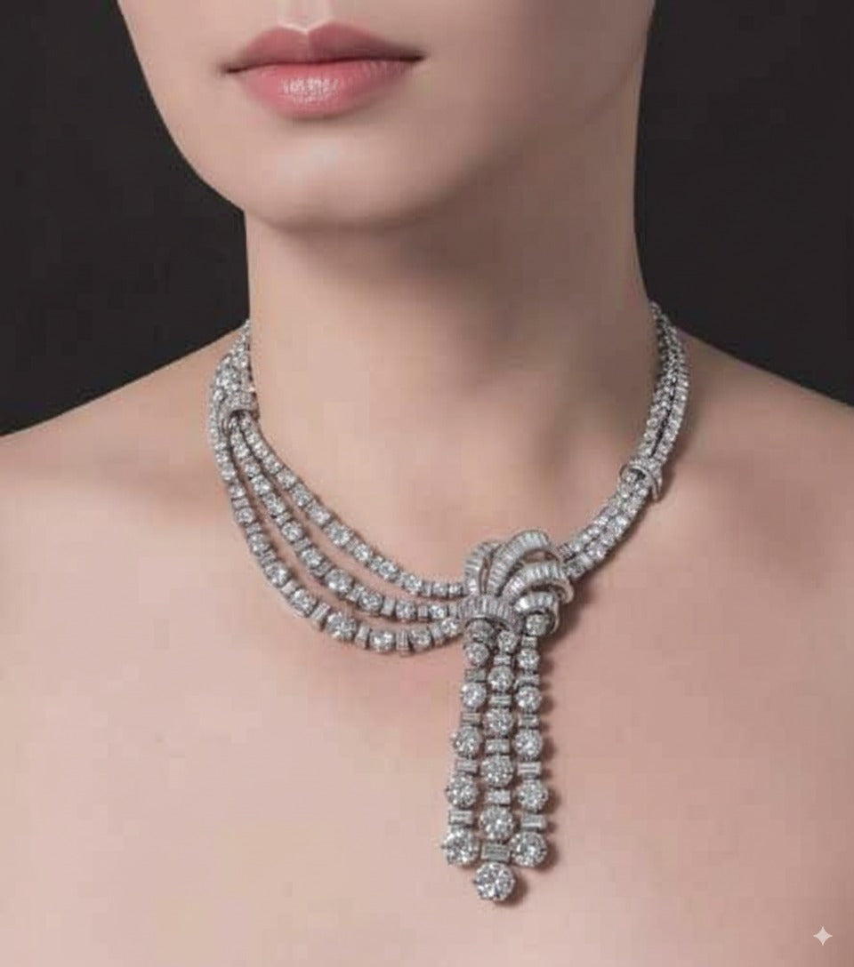 Make a bold and elegant impression with this Art Deco Vintage Inspired Statement Necklace with Cascading Tassel. Designed with intricate geometric detailing, this necklace features a dazzling centerpiece and a dramatic cascading tassel that adds fluid movement and vintage flair. Inspired by 1920s glamour, its symmetrical lines and radiant stones create a timeless, opulent look. Whether styled for a wedding, gala, or evening out, this vintage statement necklace exudes sophistication and is sure to turn heads. A must-have for those who appreciate classic beauty with a touch of drama.