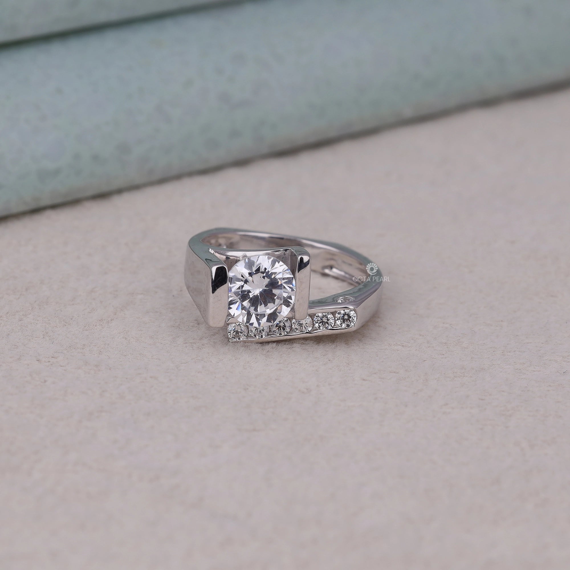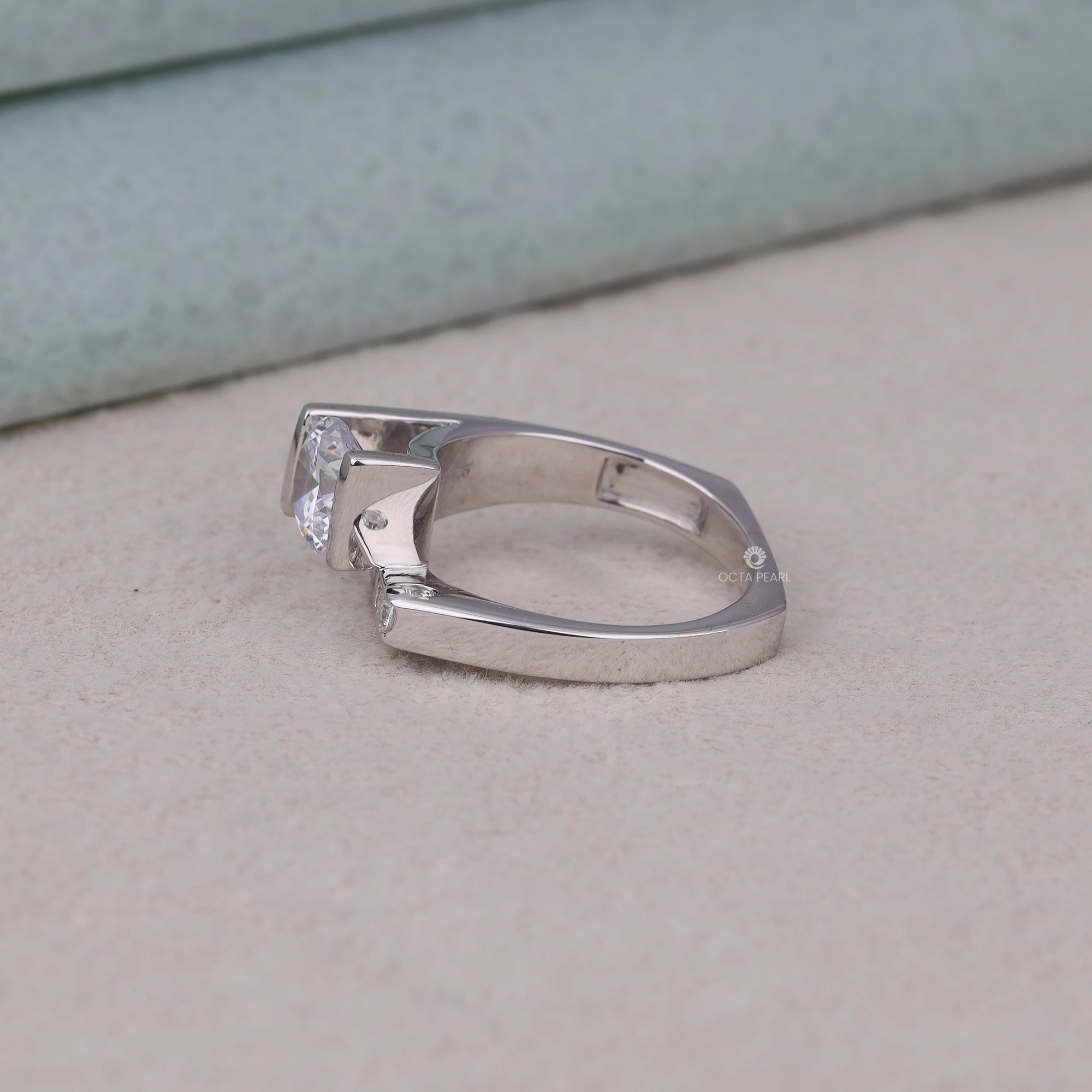 The Bypass Shank Round Cut Moissanite Tension Set or Channel Setting Engagement Ring (2 2/5 TCW) is a stunning blend of modern elegance and timeless brilliance. Featuring a gorgeous round-cut moissanite stone, this ring is set with a bypass shank design that creates a dynamic, flowing look. The stone is held securely with either a tension setting or channel setting, both of which enhance the brilliance and sparkle of the moissanite. With a total carat weight of 2 2/5 TCW, this ring offers exceptional shine and durability. Ideal for women seeking a unique, sophisticated engagement ring, this piece provides an ethical and affordable alternative to diamonds while making a bold statement of love and commitment.