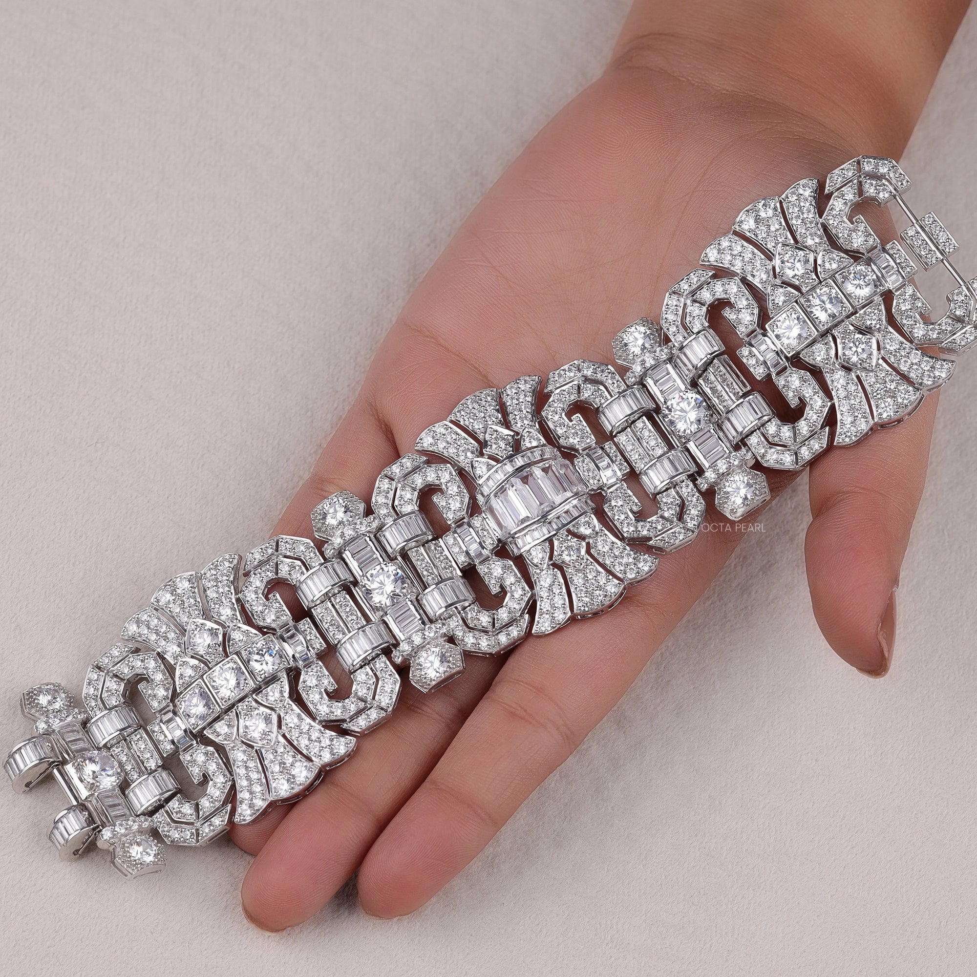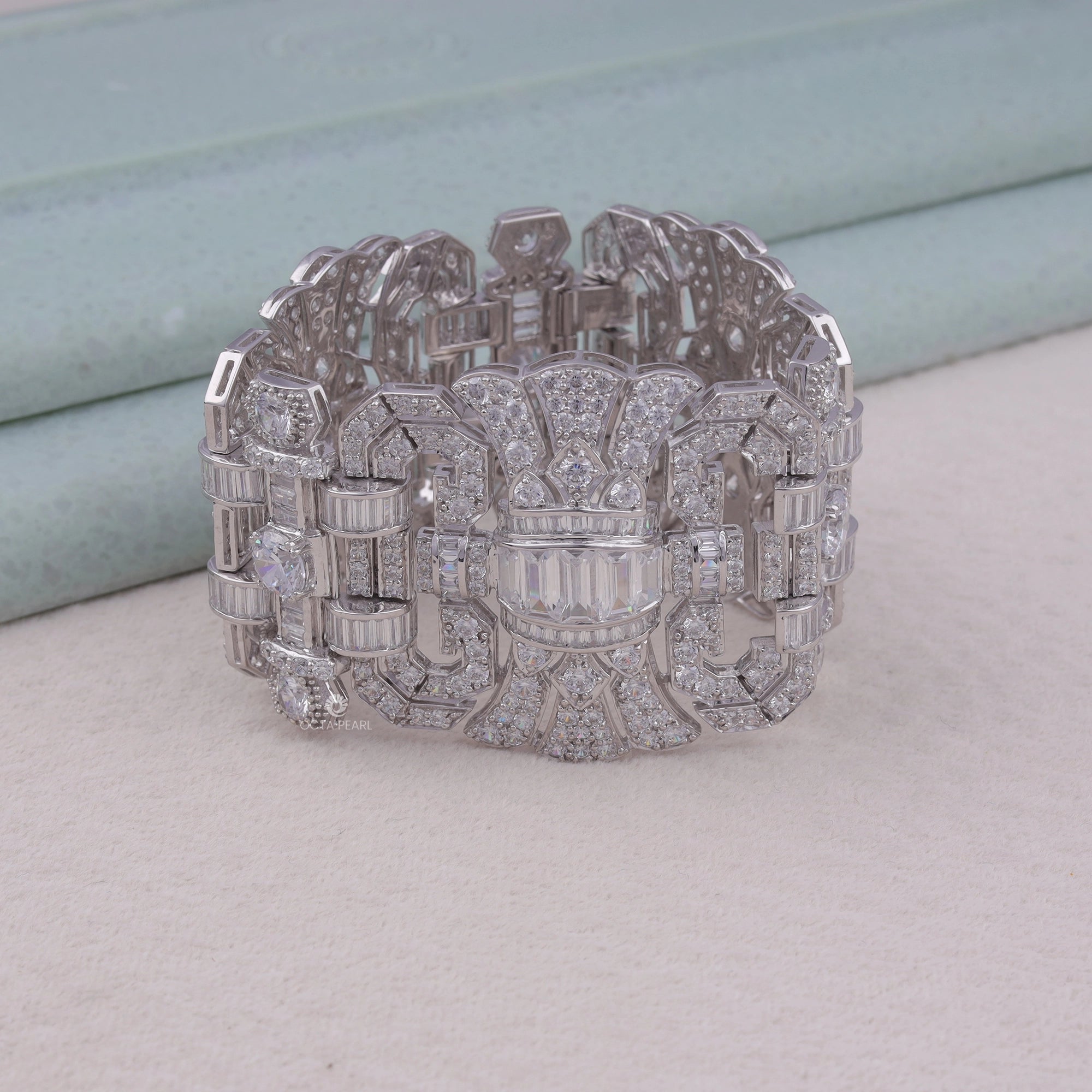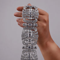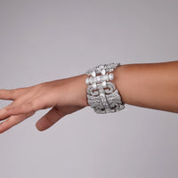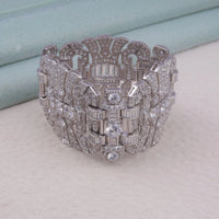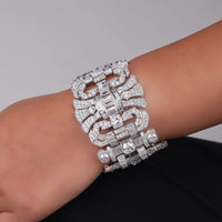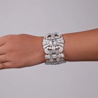 Make an unforgettable impression with this CZ Stone Art Deco Vintage Inspired Wide Statement Party Wear Bracelet. Designed with intricate geometric patterns and encrusted with shimmering CZ stones, this bold bracelet channels the glamour of the Roaring Twenties. Its wide silhouette and detailed craftsmanship make it the perfect accessory for party wear, weddings, or any elegant evening affair. Inspired by the opulence of Art Deco jewelry, this statement bracelet adds vintage elegance and brilliance to your wrist, instantly elevating any look with timeless sophistication.