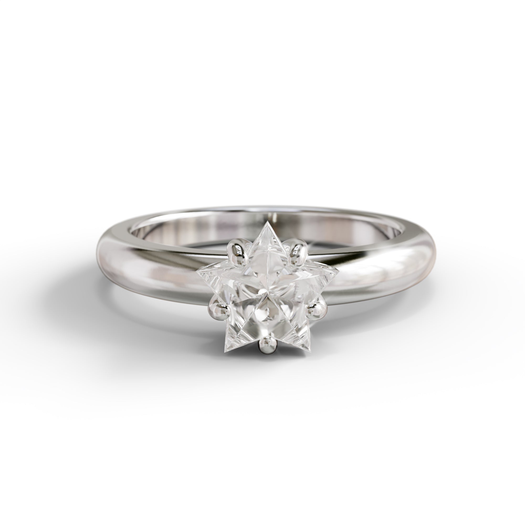 Celebrate love with this stunning 7 MM Solitaire Star Shape Fancy Cut CZ Stone Engagement Ring. Featuring a dazzling star-shaped CZ stone, this delicate and unique design symbolizes the shining promise of love and commitment. Perfect for engagements or as a promise ring, its simple yet elegant style makes it a beautiful choice for women who appreciate timeless beauty. Elevate your special moments with this exquisite star-shaped solitaire engagement ring, crafted to shine brilliantly forever.
