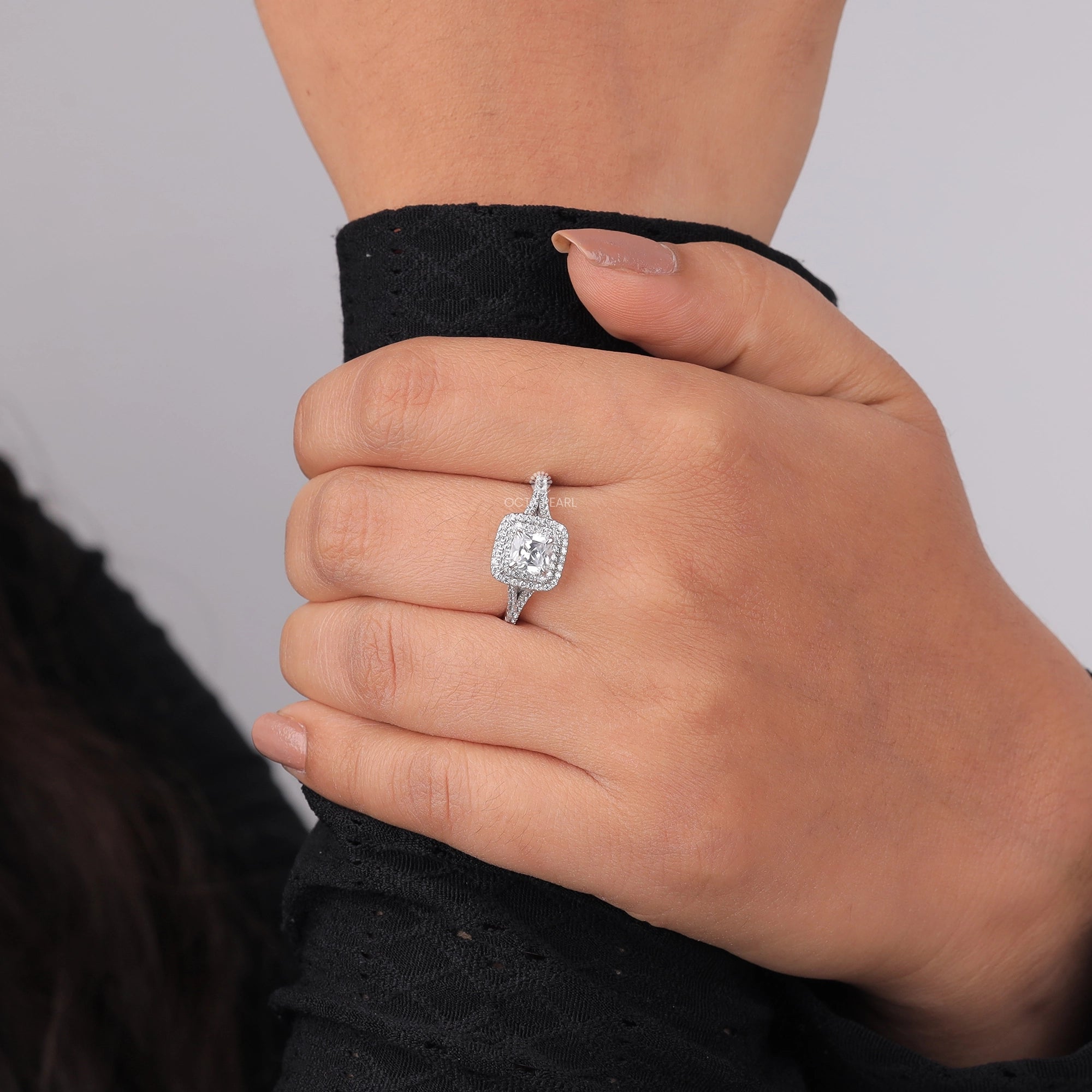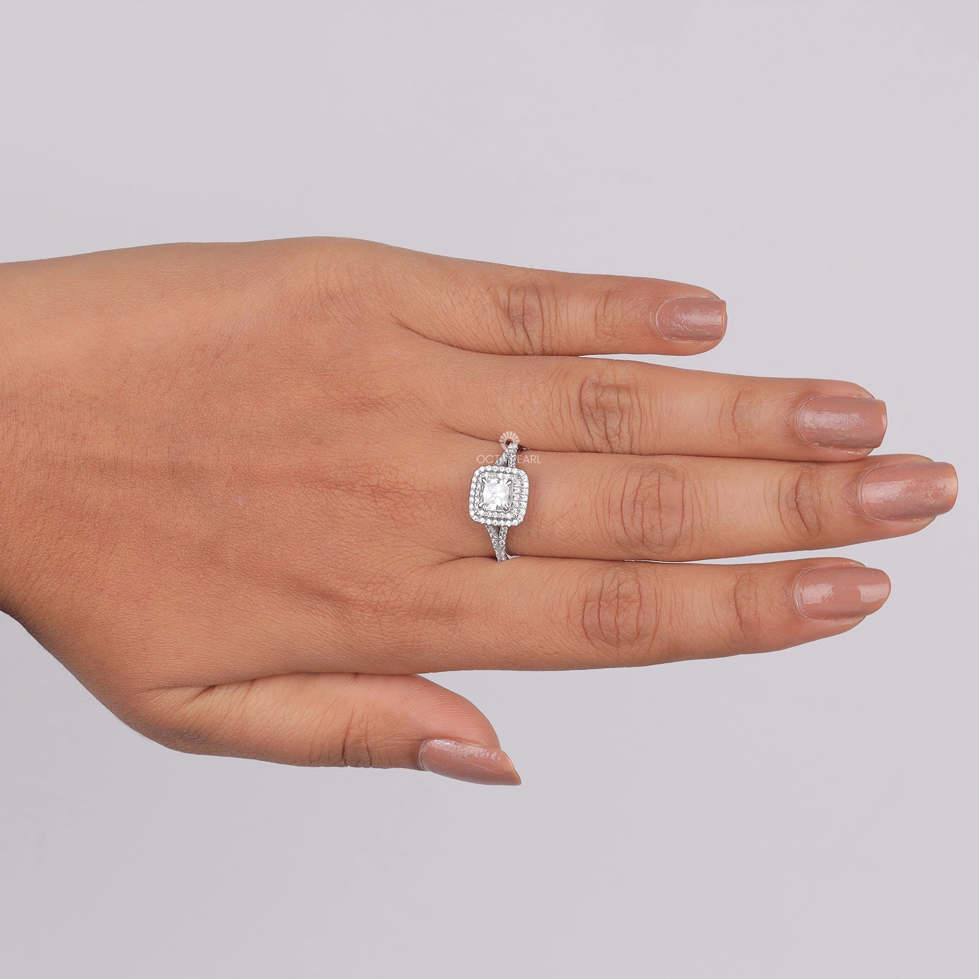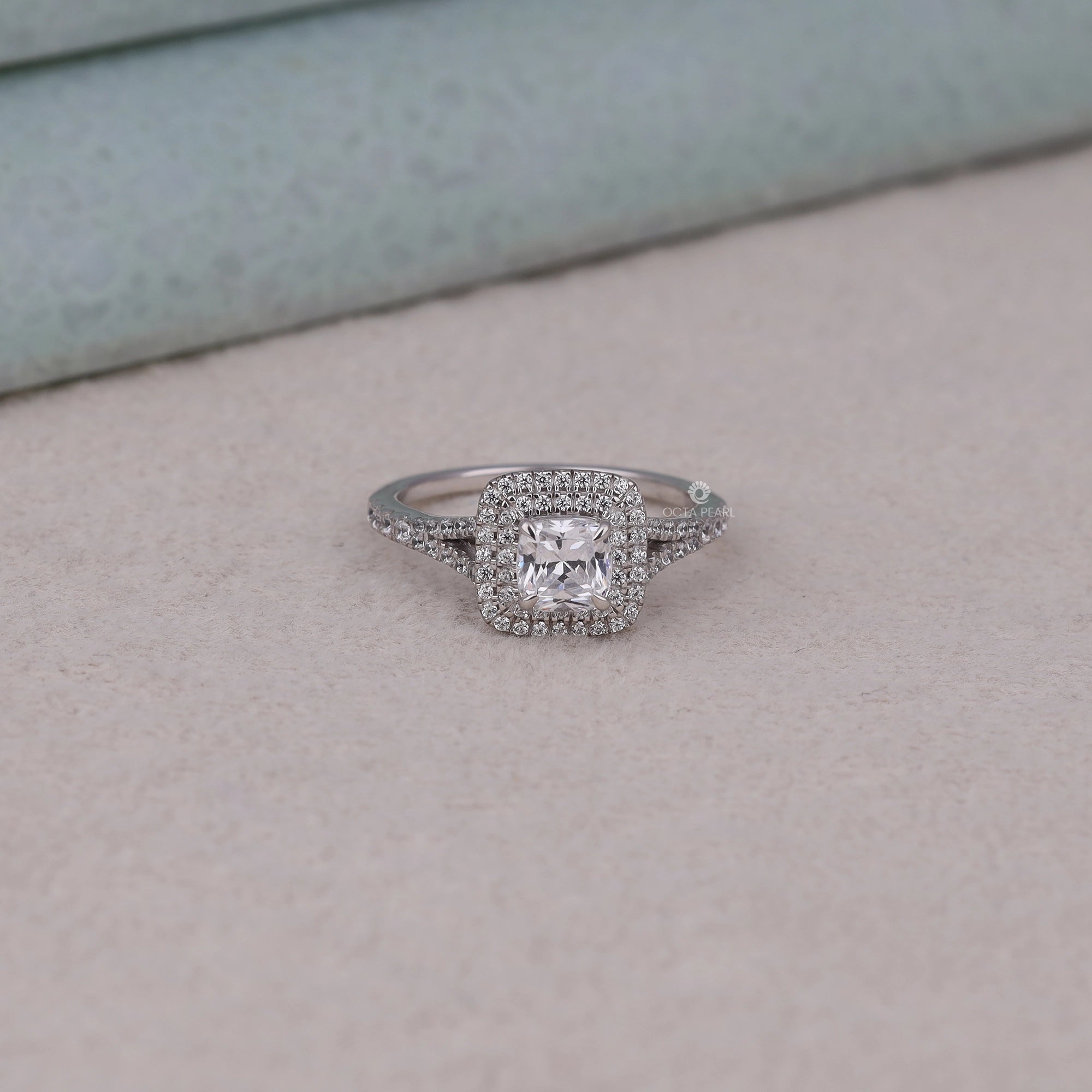 This Double Halo Split Shank Cushion Moissanite Ring exudes luxury and timeless elegance. The cushion-cut moissanite center stone radiates brilliance, surrounded by a double halo of sparkling accents for added fire and glamour. A sophisticated split shank design enhances the ring’s beauty while offering balance and comfort. Crafted in fine 14K gold, this conflict-free, sustainable ring is perfect for engagements, weddings, or anniversaries, symbolizing everlasting love and exceptional craftsmanship for a lifetime of cherished memories.