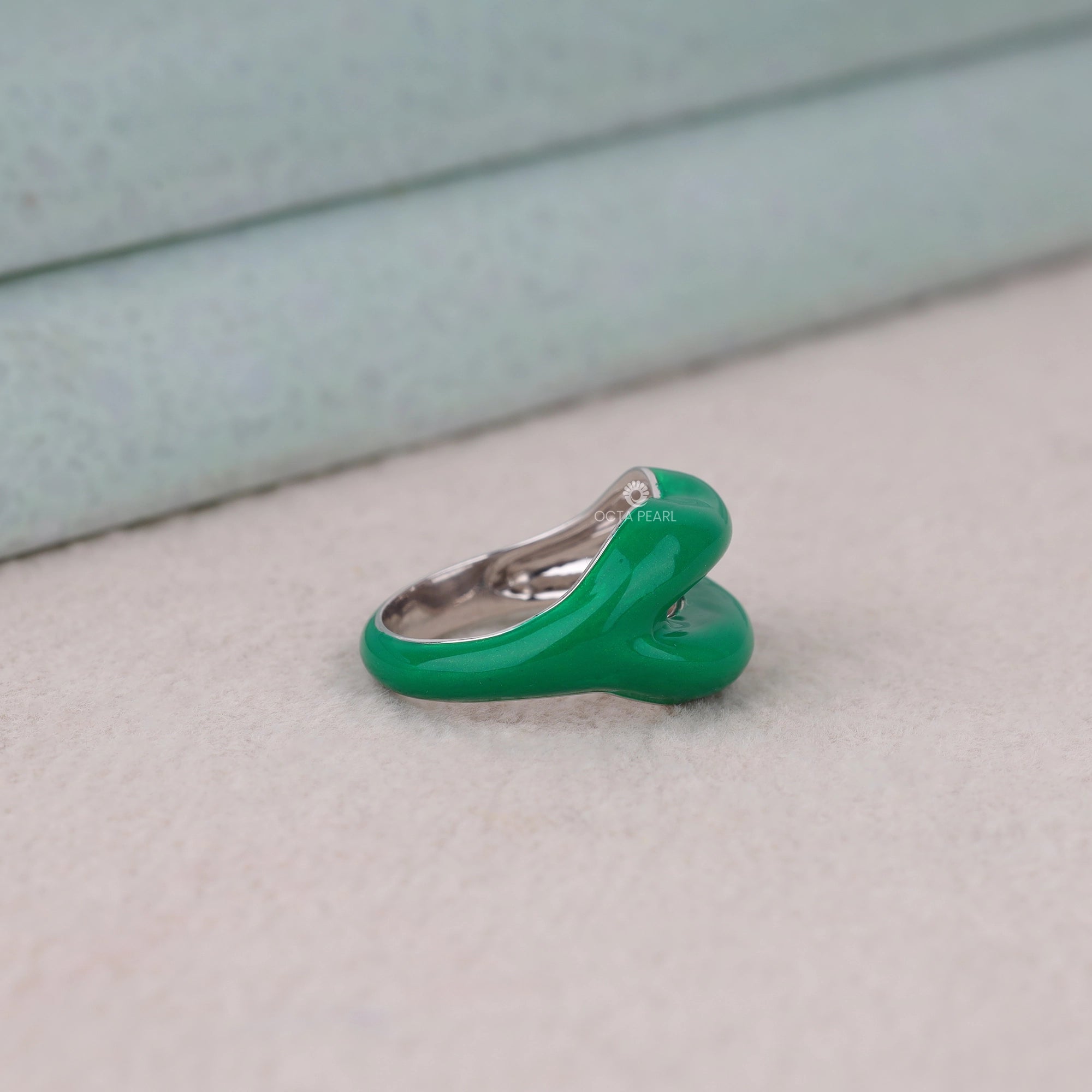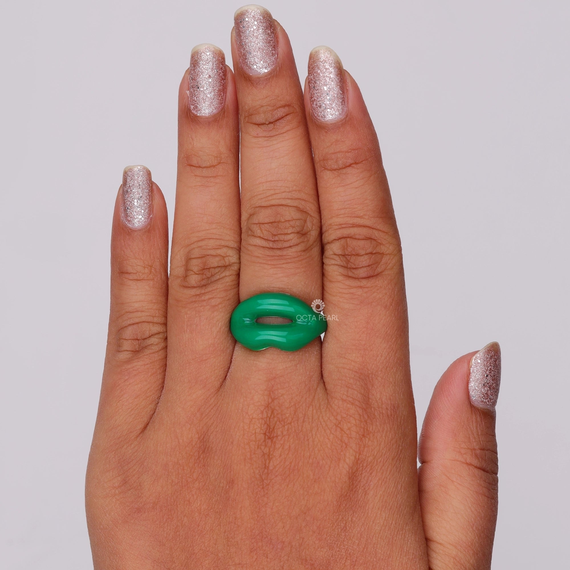 Showcase your personality with this vibrant Green Lip Shape Enamel Ring, a bold and playful statement piece designed for fashion-forward women and jewelry lovers in the USA. Handcrafted with high-quality enamel on your choice of silver, 10K, 14K, or 18K gold, it offers customizable metal options in white, rose, or yellow to match your unique style. The lifelike hot lips design is inspired by global fashion icons and delivers vivid color, lasting durability, and lightweight comfort for daily wear, parties, gifting, or adding an artistic touch to engagement and wedding looks. Gift this trendy ring to a girlfriend or loved one and spark conversations with OctaPearl’s exclusive artisanal craftsmanship.