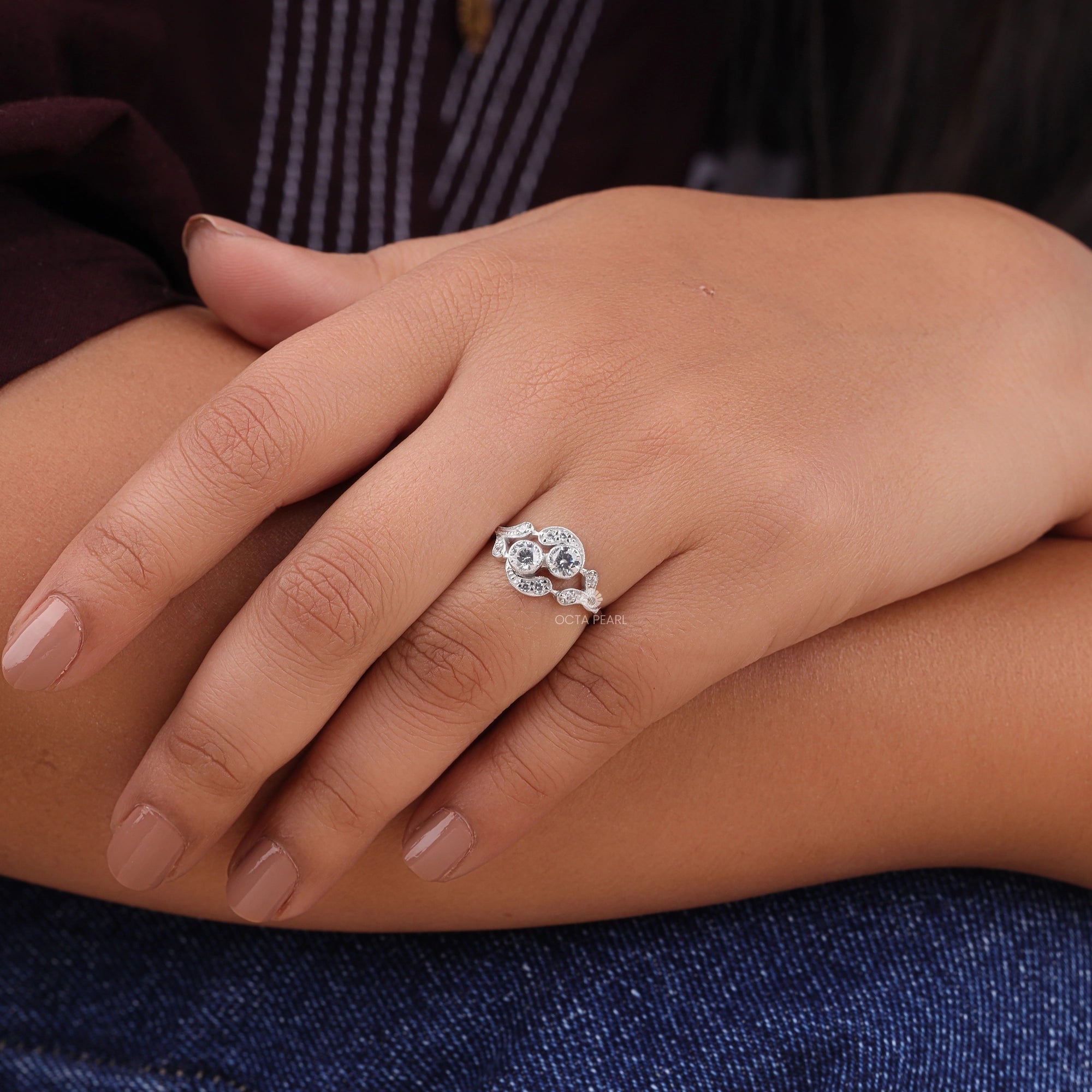 Celebrate timeless elegance with this Milgrain Bezel Set Art Deco Vintage Inspired Round Moissanite Ring. Showcasing a brilliant round cut Moissanite in a secure bezel setting, the ring is enriched with intricate milgrain detailing that echoes the sophistication of the Art Deco era. The vintage-inspired design offers a romantic and antique charm, making it perfect as a Moissanite engagement ring, promise ring, or cherished heirloom-style piece. A dazzling blend of craftsmanship, sparkle, and history.