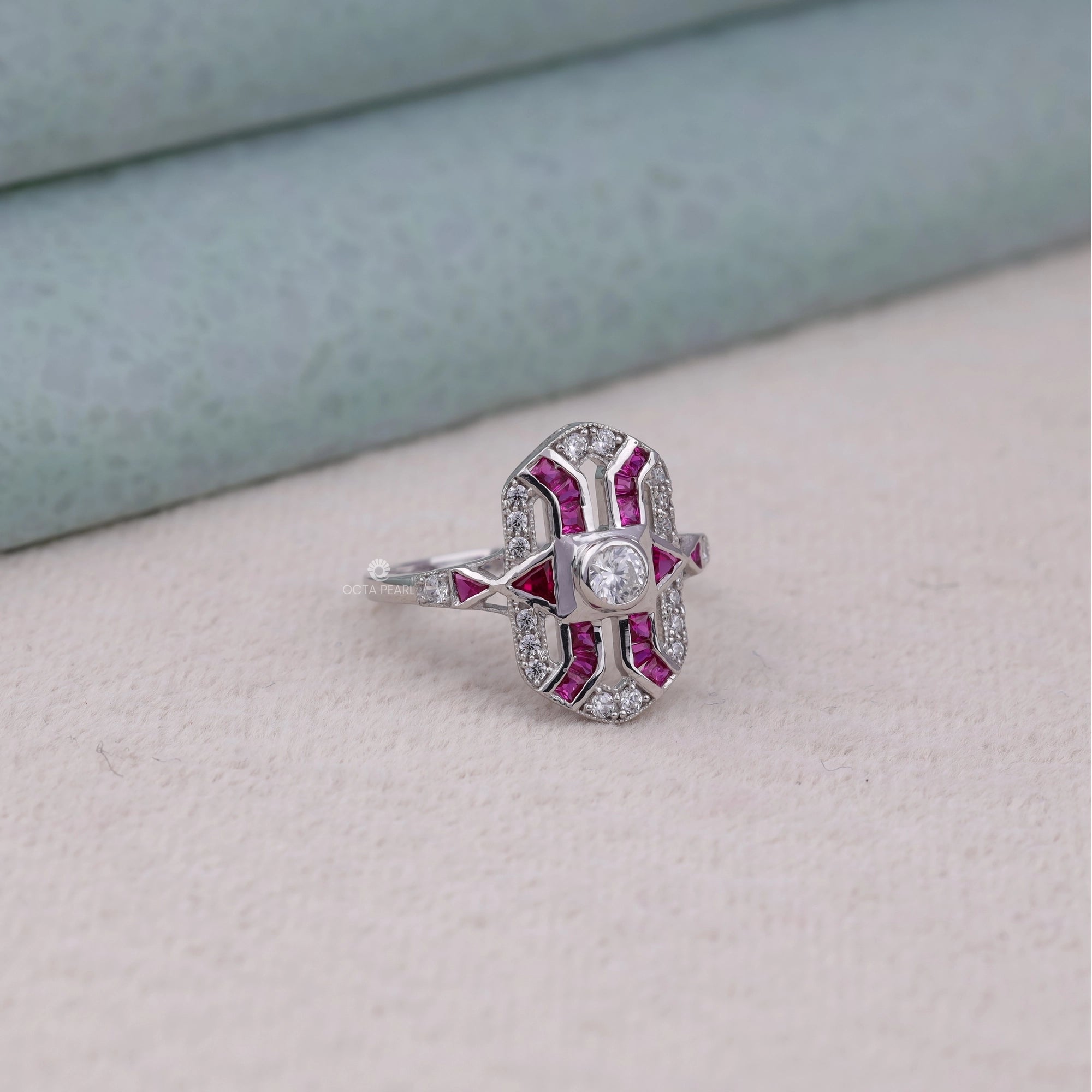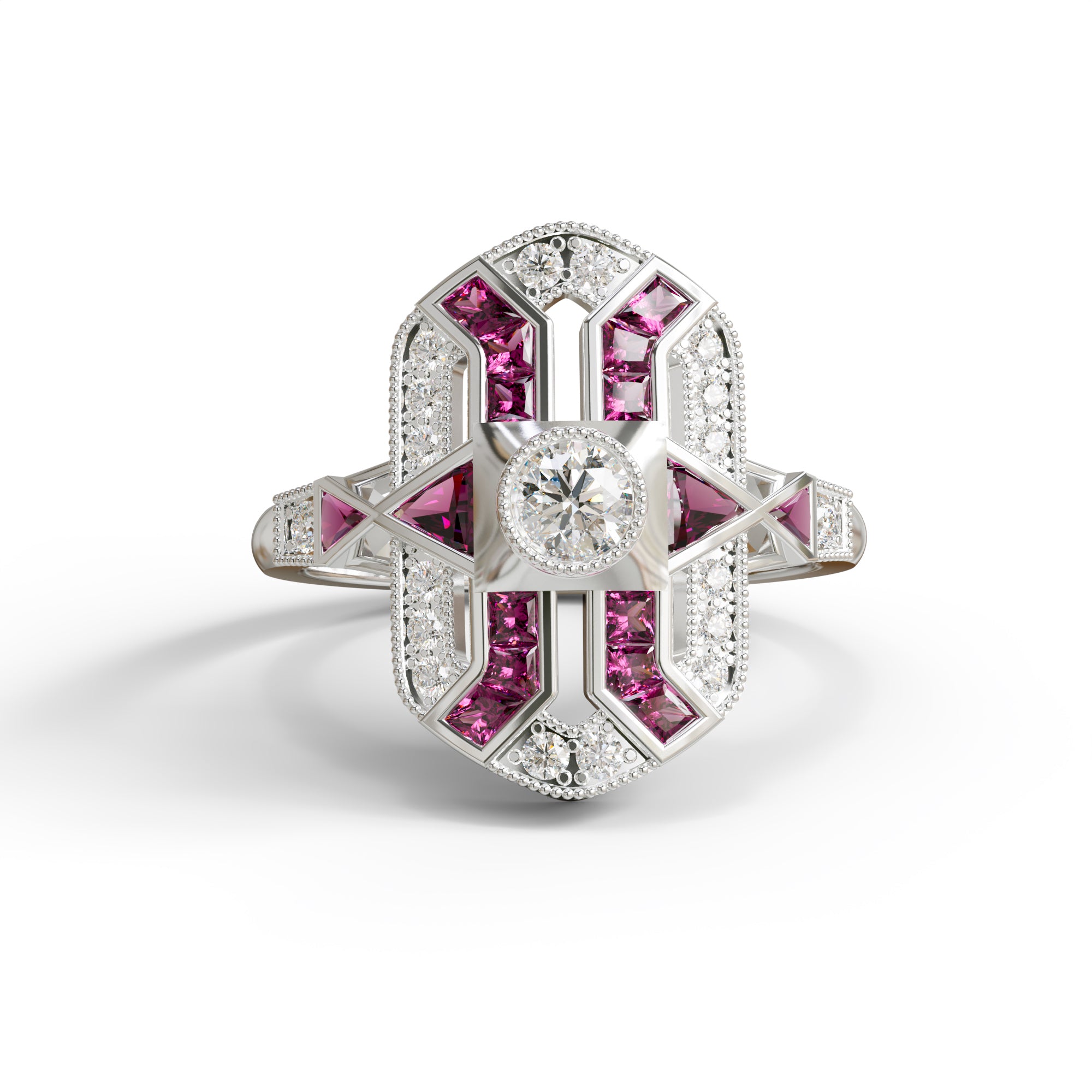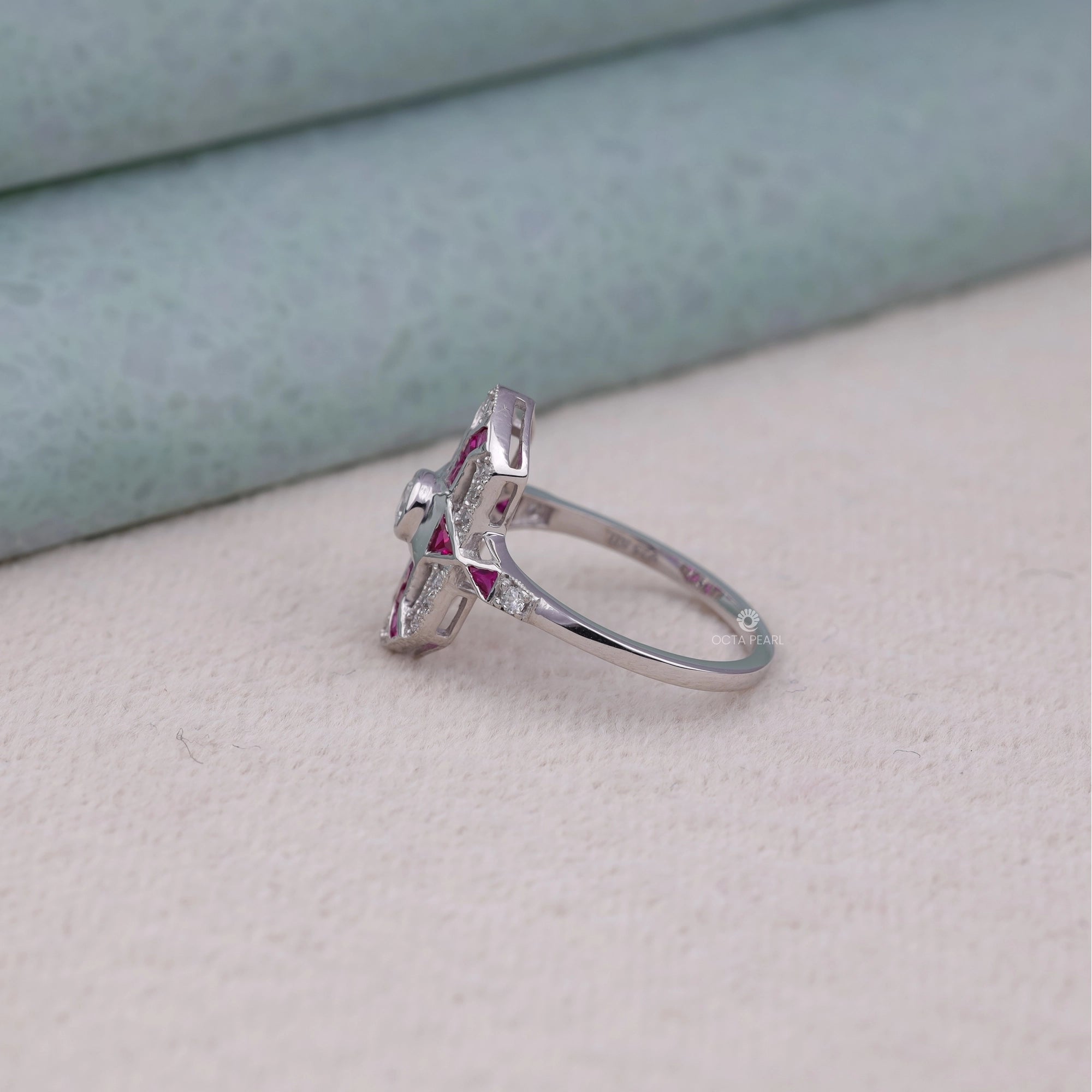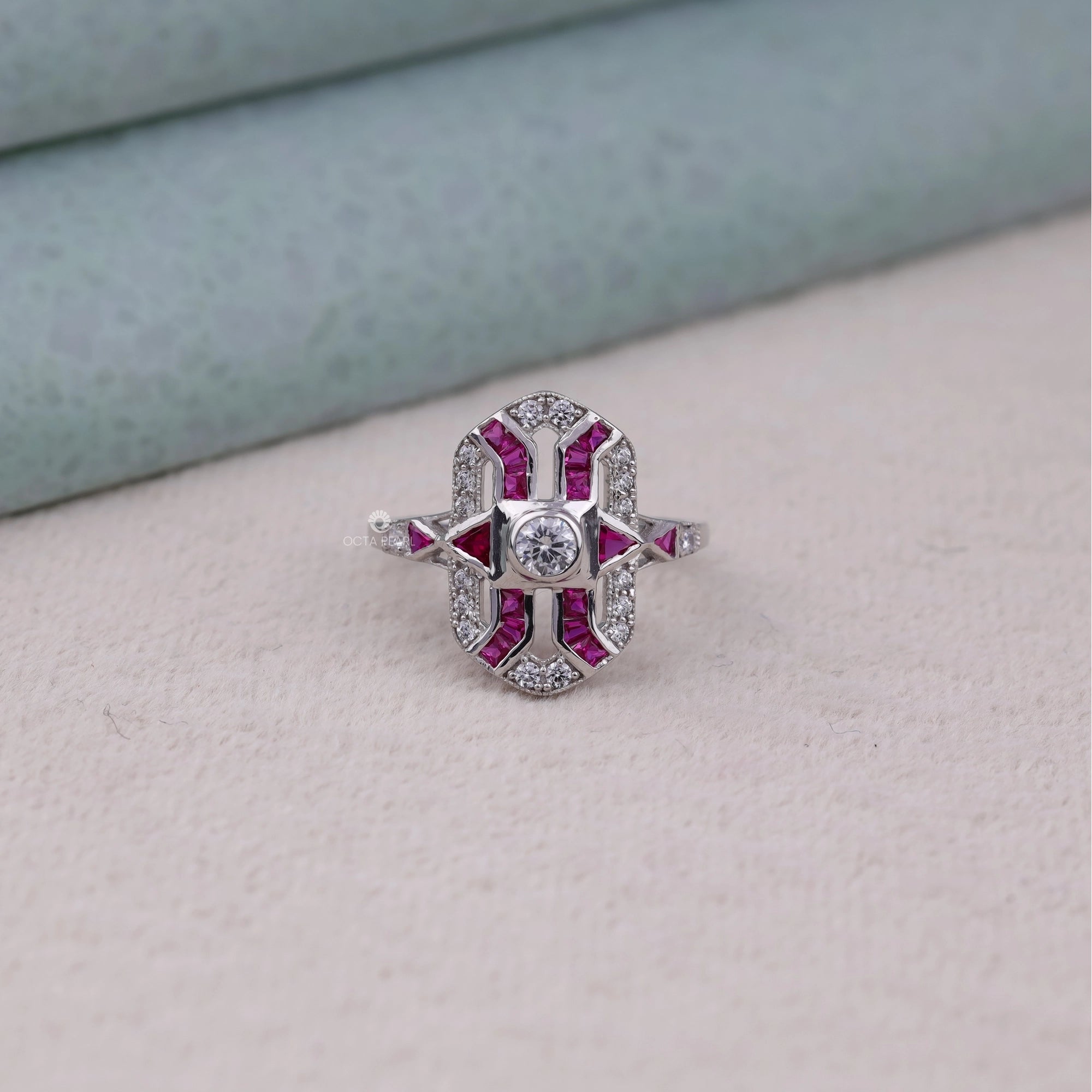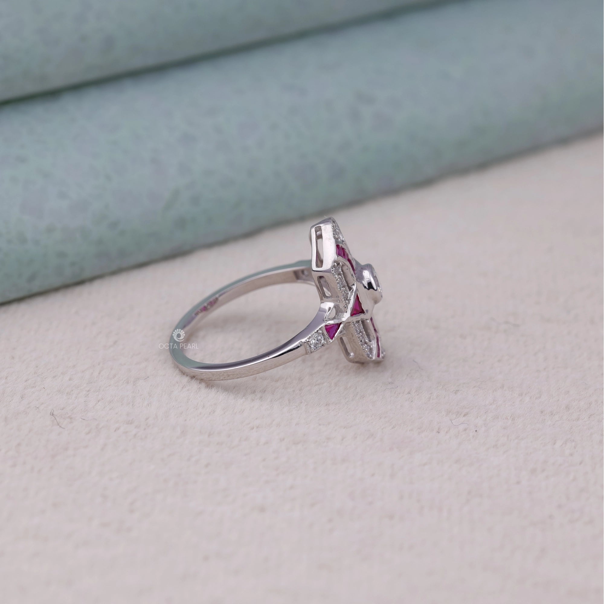 This Openwork Bezel Set Art Deco Navette Ring is a true vintage-inspired treasure. Featuring a graceful navette silhouette with a dazzling round CZ center stone and a striking fancy pink CZ accent, this ring blends bold design with timeless elegance. The openwork Art Deco detailing and bezel settings create a sophisticated, heirloom feel. Perfect as a statement ring, cocktail piece, or romantic engagement ring alternative.