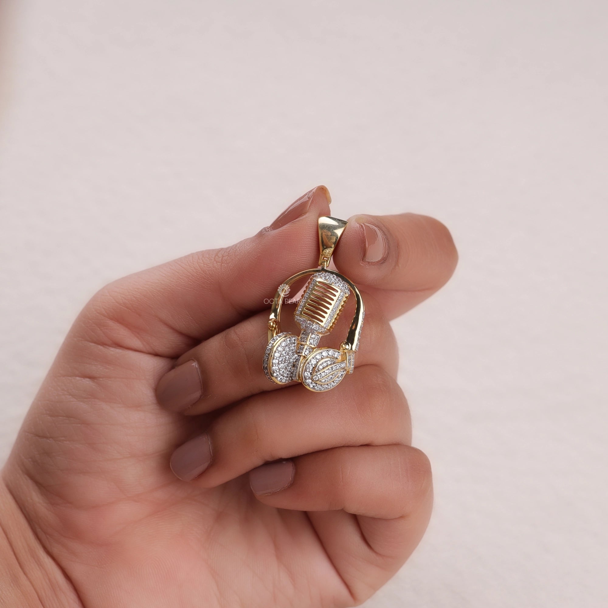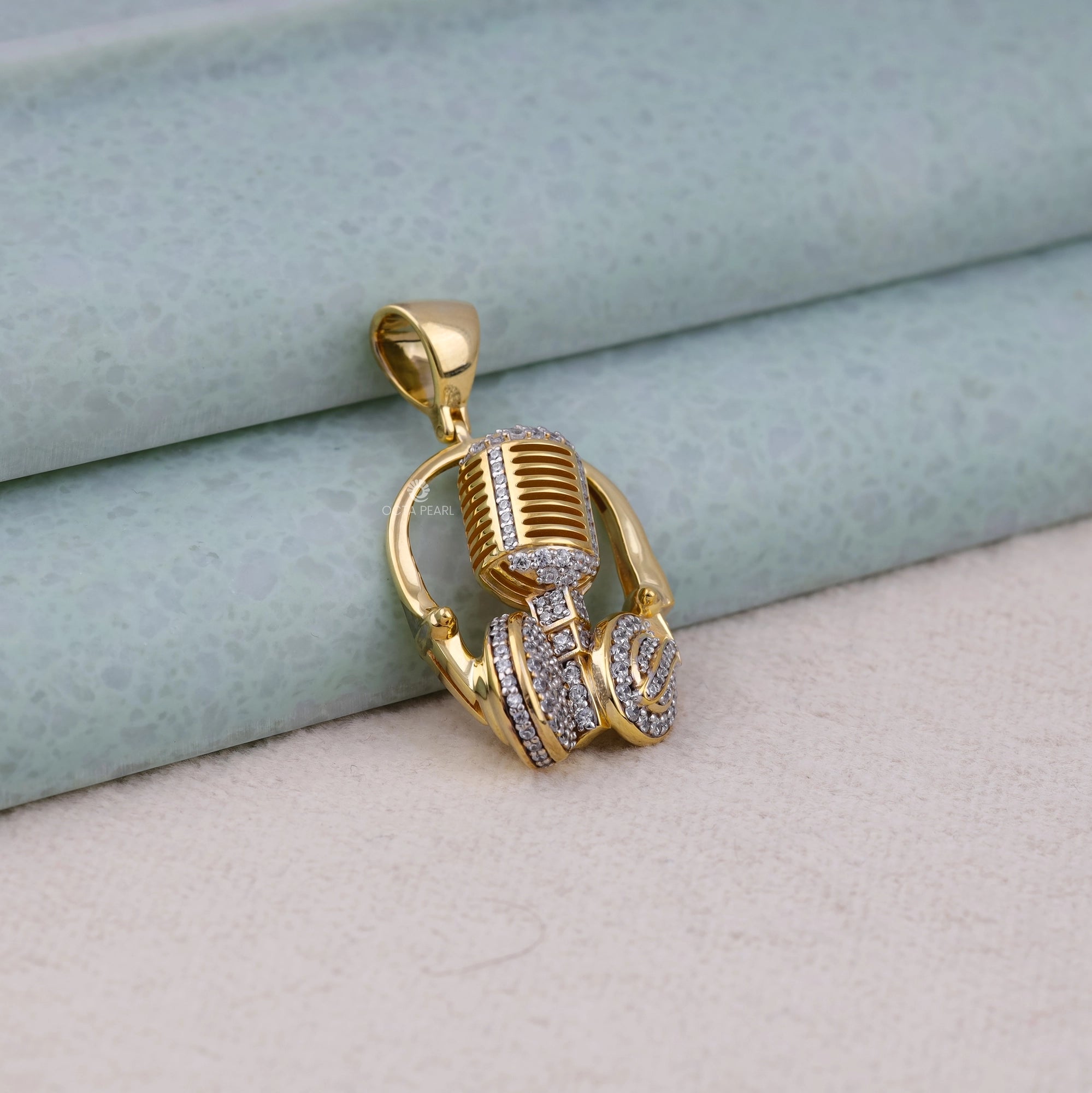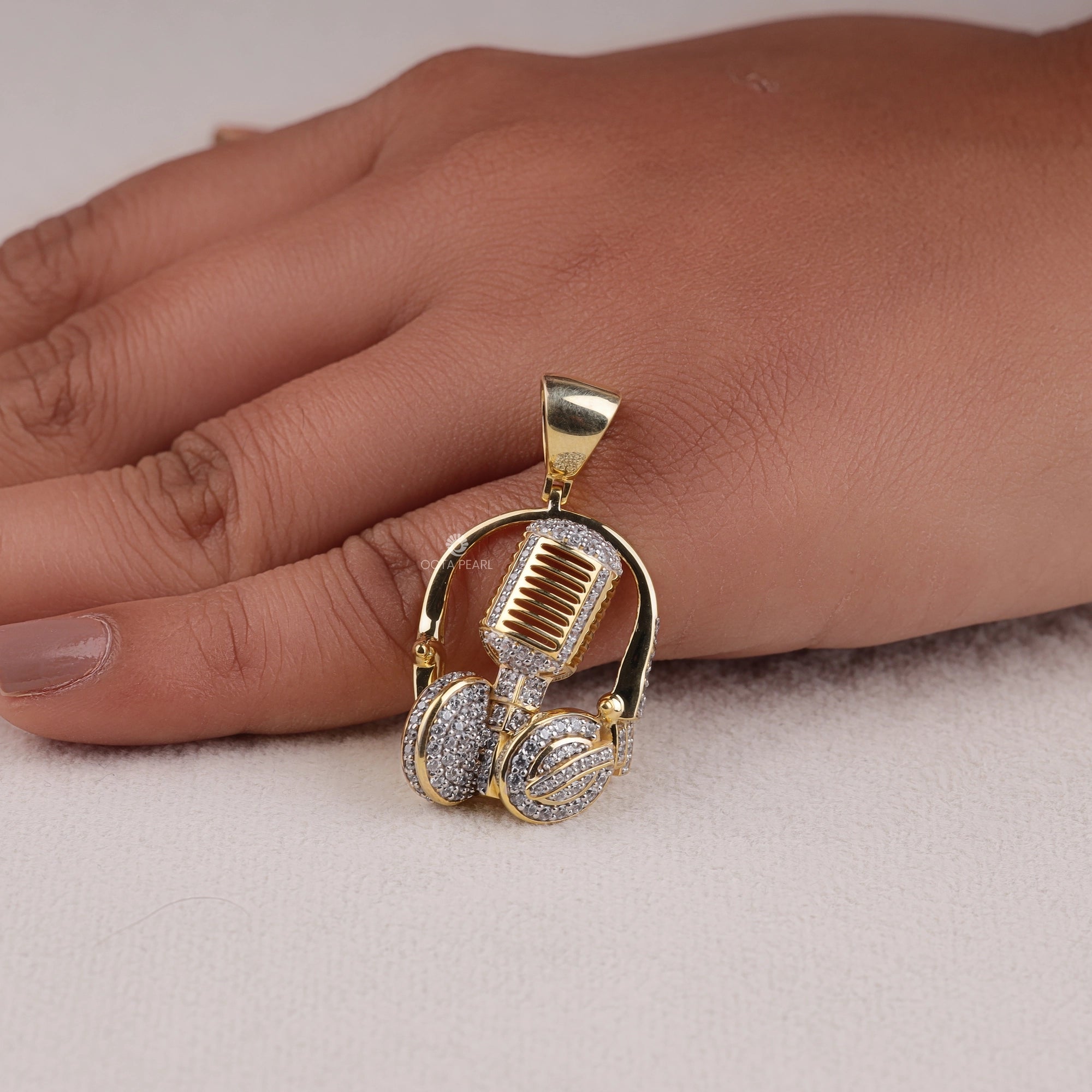 This Round Moissanite Microphone and Headphone Pendant is the perfect accessory for music lovers and performers. Featuring brilliant round cut Moissanite stones, this pendant beautifully combines the iconic shapes of a microphone and headphones, symbolizing a deep connection to music and sound. The dazzling Moissanite stones add a touch of luxury, making this piece ideal for showcasing your passion for music. Whether you're a musician, DJ, or music enthusiast, this Moissanite pendant is a stylish and meaningful way to express your love for music while adding elegance to your jewelry collection.