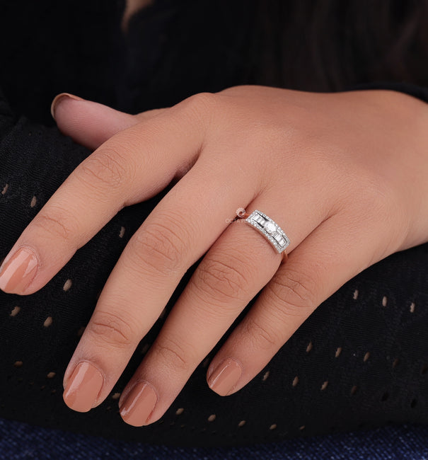 The Round Moissanite Milgrain Octagon Shape Eternity Band is a stunning piece that combines classic elegance with a modern twist. This eternity band features brilliant round Moissanite stones, set within a unique octagon-shaped setting. The delicate milgrain detailing along the edges enhances the vintage charm of the design, giving the band a refined, sophisticated look. The continuous line of Moissanite stones represents unending love, making it the perfect symbol for a wedding or anniversary. Available in 14K gold, 18K gold, or platinum, this band is sure to become a cherished part of your jewelry collection.