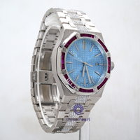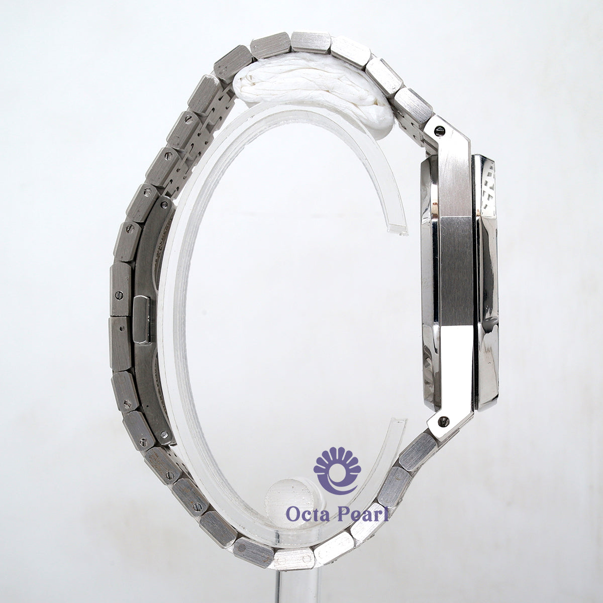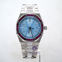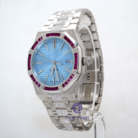 Elevate your wristwear with this Round Moissanite with Pink Tapered Baguette CZ Stone Automatic Stainless Steel Watch — a striking blend of luxury, precision, and artistry. The dazzling round Moissanite center stones deliver unmatched brilliance, while the pink tapered baguette CZ accents add a bold touch of color and sophistication. Powered by a smooth automatic movement, this watch offers reliable, battery-free performance. The polished stainless steel case and bracelet ensure durability with timeless appeal, making it perfect for luxury styling, formal wear, or adding a statement piece to your everyday look.