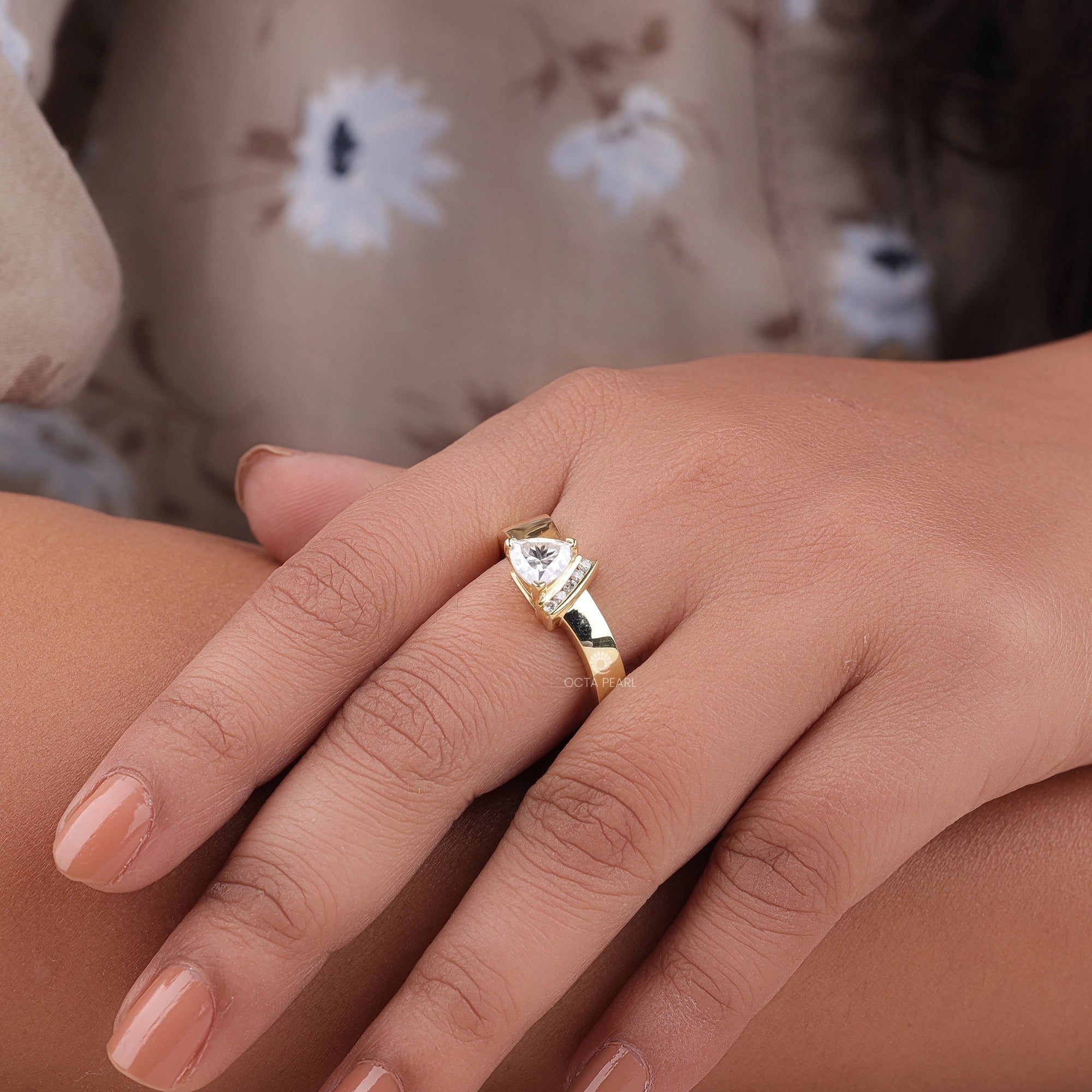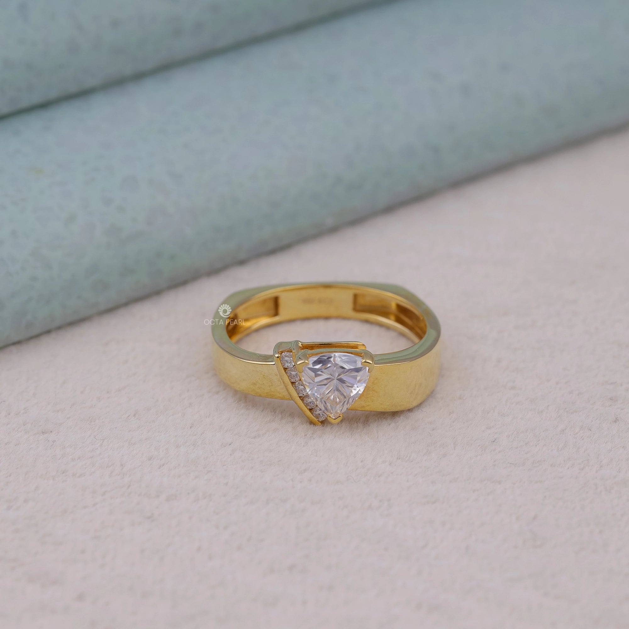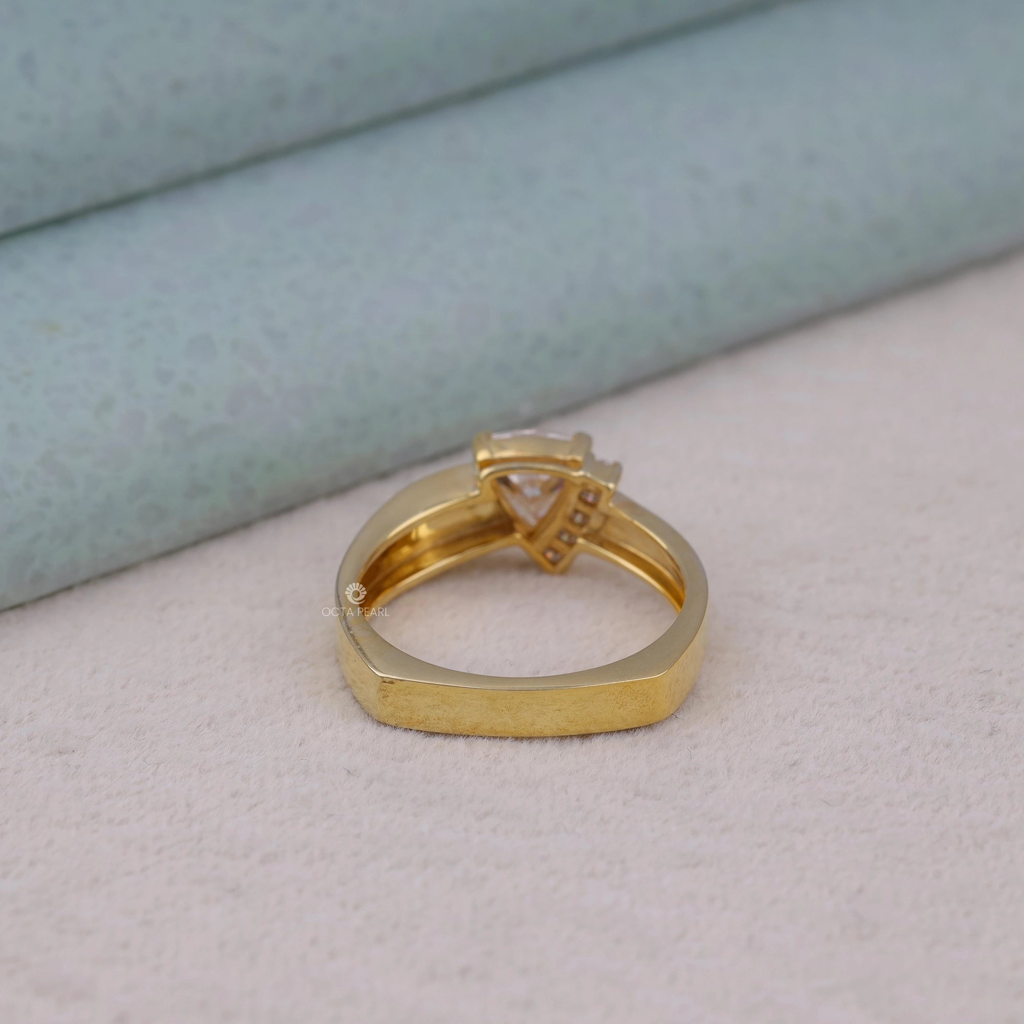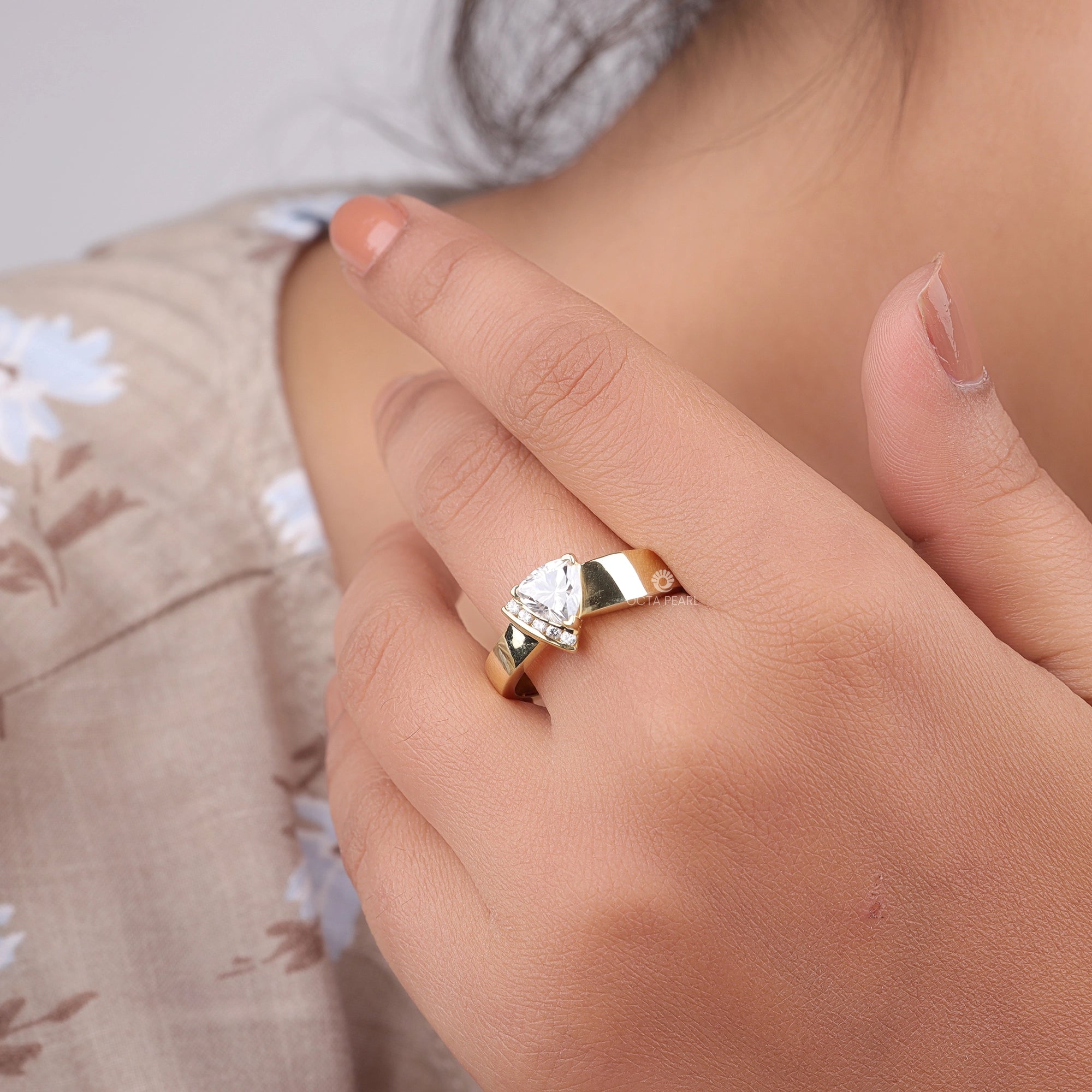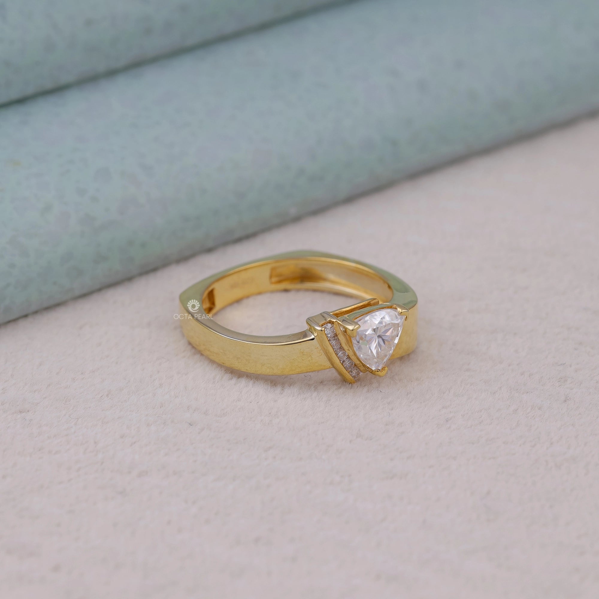 Bold and modern, this Trillion Moissanite Channel Setting Euro Shank Ring is designed for both men and women who appreciate sleek sophistication. The striking trillion cut Moissanite stone is expertly set in a secure channel setting, allowing the unique shape to shine with intense brilliance. The distinctive Euro shank adds a contemporary edge, ensuring a comfortable and balanced fit. Whether worn as a fashion ring, wedding band, or commitment piece, this Moissanite Euro shank ring makes a powerful style statement with its clean lines and luxurious sparkle.
